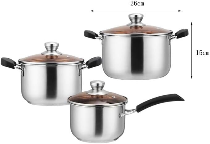 Name: Cookware SetMaterial: Stainless SteelSize: 30cm(As shown)Color: Stainless Steel(As shown)Resizable: NOPackaging: NOIncludes lid: YESPacking list: Cookware Set*1set (excluding other exhibits)Notes:Due to manual measurement, please allow an error of 2-3 cm.The actual color may be slightly different from the picture due to different lightingComplete kitchen set - Includes frying pans, stew pots, soup pots and corresponding lids, meeting all cooking needs. gift for moving house and festive occasions.