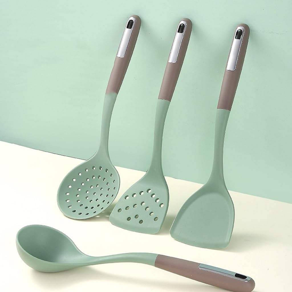 Scoop can be used for two purposes. Large capacity soup ladle can save the worry of hollowing out the top of Congee, and the soup can be filtered by tilting it.Spade surface hollowed out, automatic oil filtering, fried and grilled with oil saving edges sloping, fitting well without damaging the pot.Uniformly distributed leaks quickly filter soup and water.Anti scald handle hanging hole storage.Comfortable grip, fits the palm of the hand, and is not afraid of stir frying or hot oil testing.Name: Kitchenware 4-piece setMaterial: SiliconeColor: As shown in the pictureNumber of pieces: 4Specification: Kitchenware 4-piece set * 11. Due to screen display differences, there may be slight color differences in the visual. Please refer to the product received.2. Manual measurement may have slight errors, please understand.Best slotted spoon for deep frying chickenStainless steel slotted spoon with wooden handle