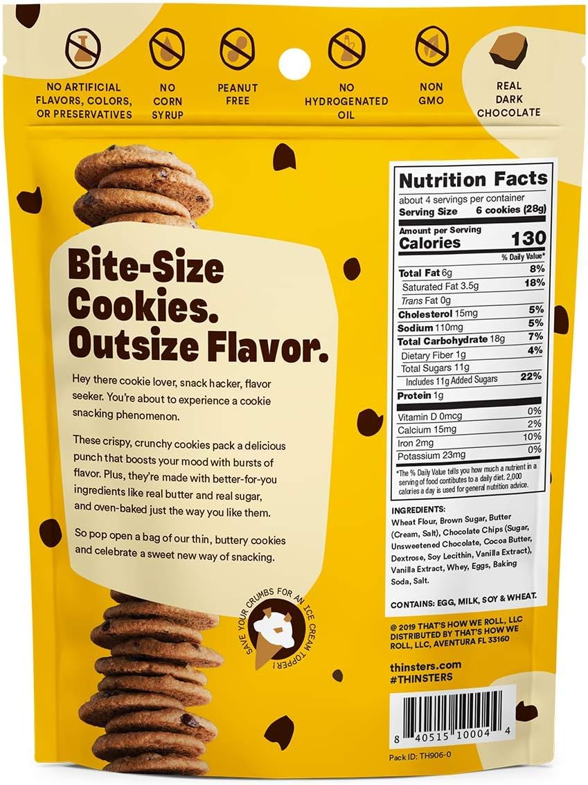 | Item Type Name | Thinsters Cookie Thins Chocolate Chip, 4 Ounce (Pack of 12), Non GMO, Peanut Free (Packaging May Vary) |