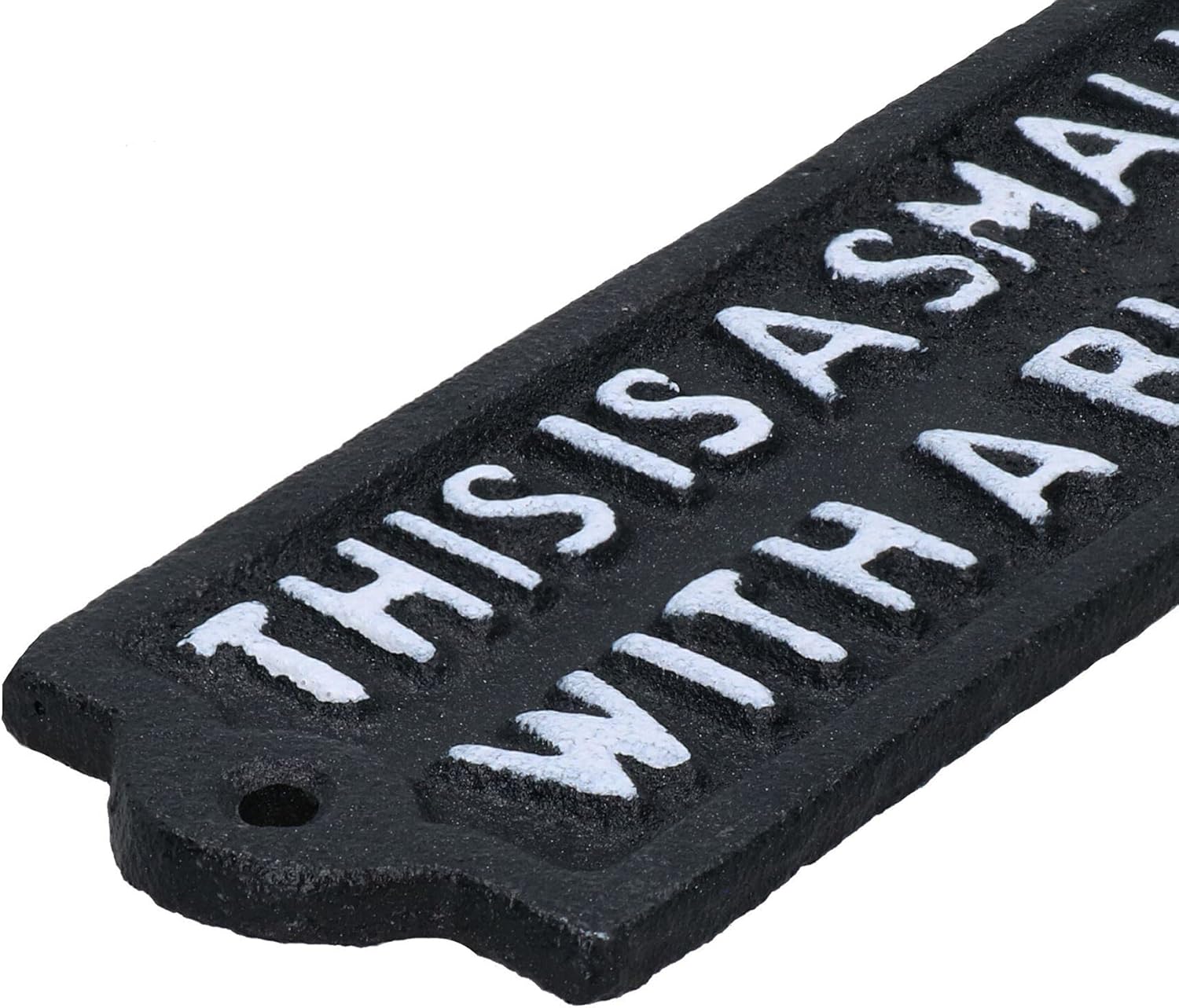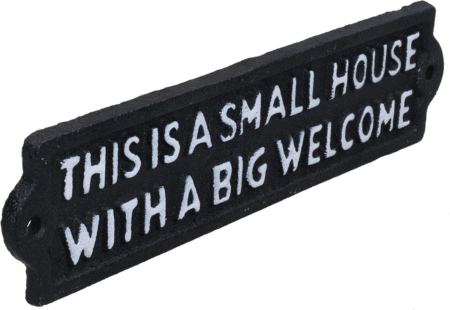 This Is A Small House With A Big Welcome Sign. Cast Iron. Black background with white raised writing and black outline. 2 screw holes, 1 in the centre of each end. Antique style finish. Great on a fence, gate or door. Length: 22cm approx. Width: 6cm approx. Depth: 5mm approx.This item is NEW, but comes in "Rustic" condition and is being sold as pictured.