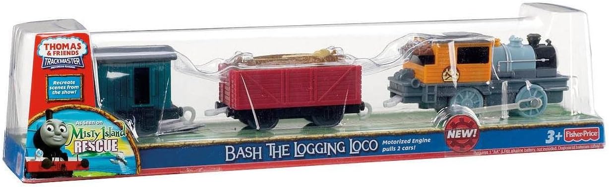 From the Manufacturer Bash is a brand new motorized TrackMaster engine. He and his twin Dash are the “Logging Locos” that live on Misty Island and help Thomas find his way home. Bash is pulling a cargo car of logging supplies and a logging caboose from Misty Island. Push him along or flip the switch to watch him chug along by himself. Motorized train track play is compatible with all TrackMaster sets (sold separately).
