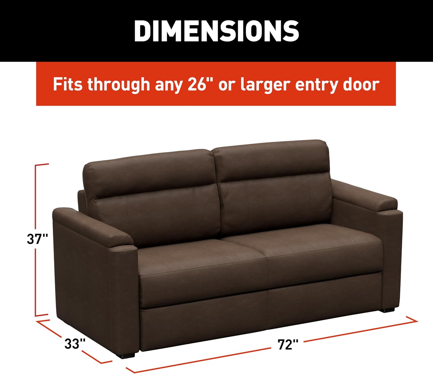 Sit. Lounge. Sleep. The Thomas Payne Signature Heritage Series RV clickback sleeper sofa brings ultimate relaxation to your RV. With its clickback design, you can adjust the head portion into four reclining positions, giving you the flexibility to unwind exactly how you like — whether you're watching TV, reading, or simply relaxing. Switching from a sofa to a bed has never been easier. The fold-out legs automatically adjust to different surfaces, ensuring stability no matter where your adventures take you. Measuring 33 inches in depth as a sofa and extending to 66 inches when folded out as a bed, it’s the perfect solution for comfortable seating by day and restful sleep by night. This sleeper sofa pairs long-lasting durability with timeless design. The easy-to-clean PolyHyde vinyl fabric is not only luxurious but also comes with a 7-year Hydrolysis warranty. Choose from three elegant PolyHyde colors — Driftwood, Satula, and McCoy — or opt for the woven Dellmead fabric to match your RV’s unique interior style.
