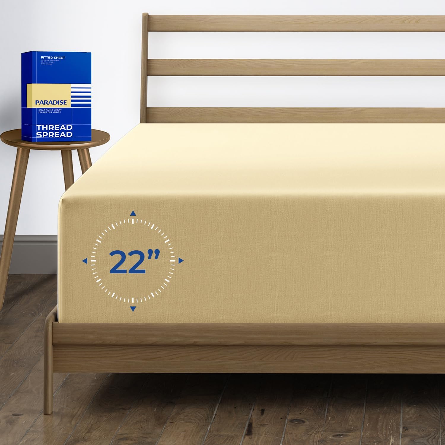 What Comes In The Queen-Size fitted sheet 22" Pack? 1 Queen fitted sheet 22" Only Cotton, Measuring 60’ W X 80’ L Do These Fitted Sheets Perfectly Fit The Queen-Size Bed? Yes. Our Queen Size Bed Sheets Fitted Have ‘Extra’ Deep Pockets (16 Inch) And All-Around Elastic To Easily Hold A 22" Thick Mattress. No Sliding Or Popping Off. This Is Best For Restless Sleepers Who Toss And Turn A Lot At Night. What Makes Our 1000 Series Fitted Sheets Better? Our Queen Size fitted sheet 22" Only Are Made From Extra Long Staple Cotton While Other Manufacturers Use Short-Staple Cotton Or Regular Cotton. Since The Pure & Organic Cotton We Use Is Better, Longer, And Finer, It Produces A Softer, Cooler, And Smoother Feel. The Sateen Weave Is The Cherry On Top-To Make The Sheets Satin-Smooth And Ultra-Cozy Which Feels Like Egyptian Cotton Hotel Bedding. How Can We Say Our Sheets Are Less Prone To Shrinkage & Fading? Our Top-Rated, Luxury fitted sheet 22" With Deep Pockets Are Mercerized-Which Means They’Re More Resistant To Pilling, Fading, And Shrinking Than Other Cotton Sheets. They Also Absorb More Dye, Which Means These Sheets Look Brighter And Retain Their Original Color After Every Wash. What Makes Us Trustworthy? Our Deep Pocket Cotton Bottom Sheet Are Made In An Environmentally-Friendly, Socially Responsible, And A Third-Party Inspected Unit. All Our Products Meet The Highest Safety Standards With Oeko-Tex Certification, Which Ensures No Harmful Substances And Chemicals Are In Your Bedsheets
