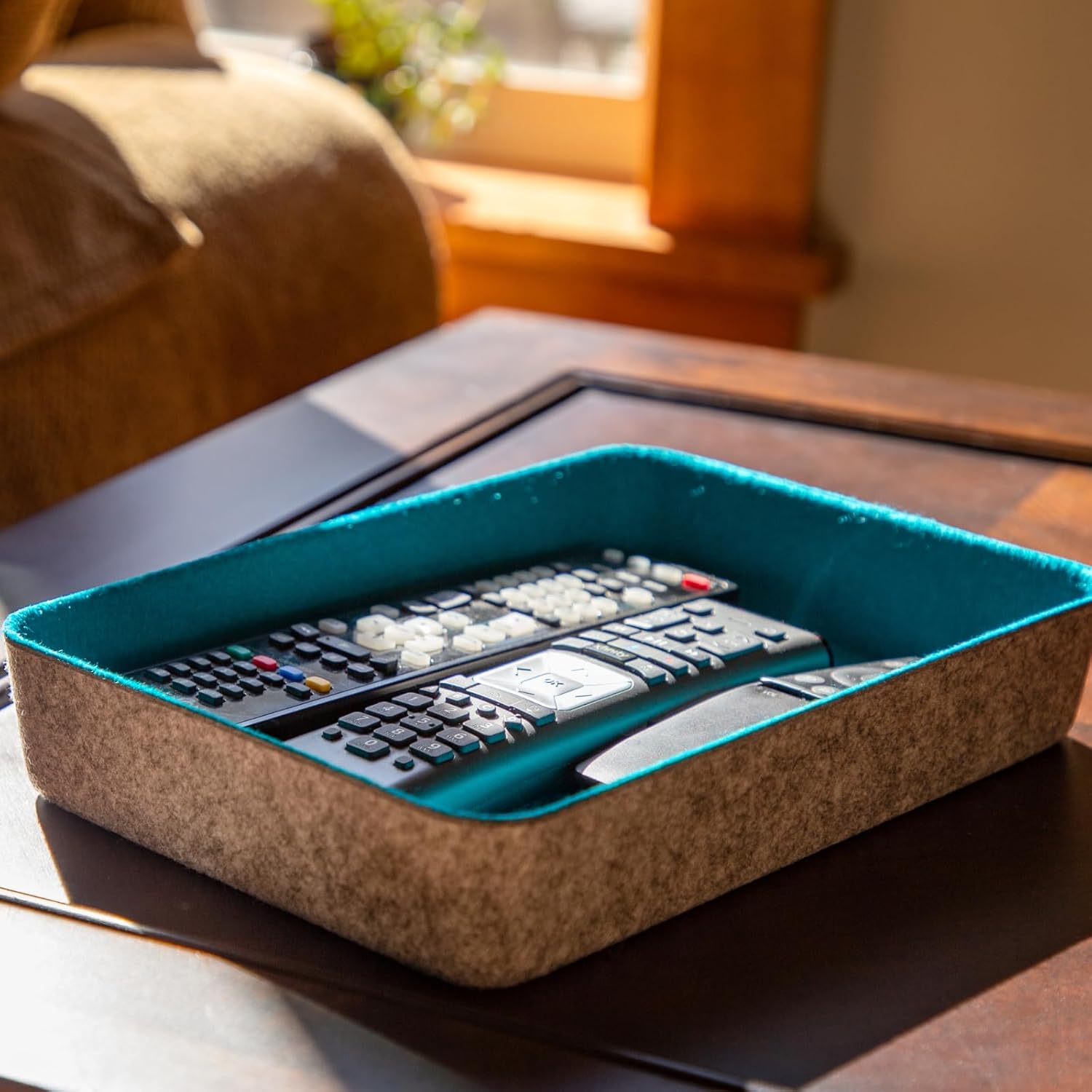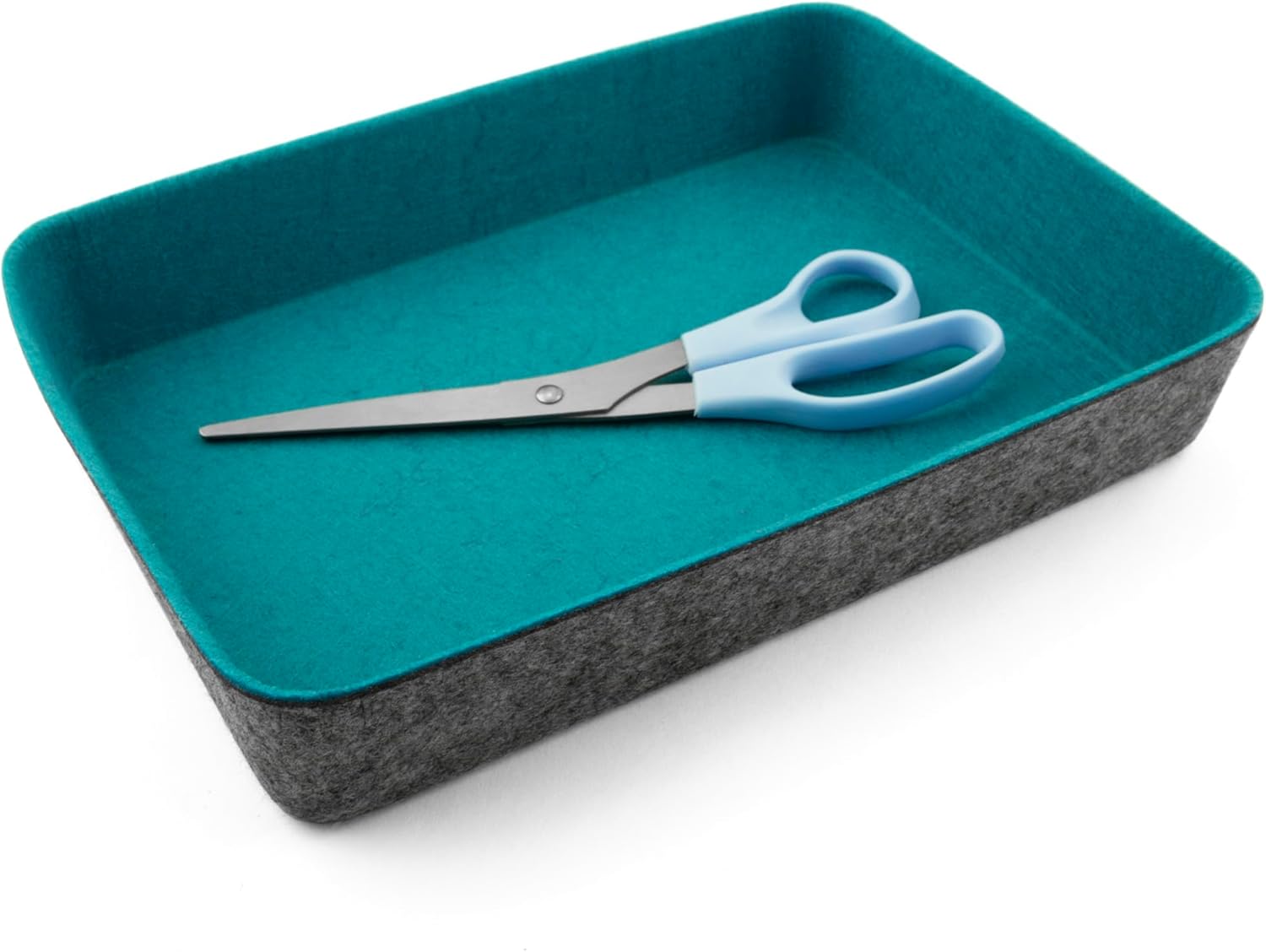 Elevate your organization game with our felt·like·it! wide organizer tapered storage bins. These eco-friendly bins are made from recycled felted PET, offering a sustainable solution to decluttering your space. With their bright two-tone design, they add a splash of color and style to any room. Perfectly sized for office supplies, miscellany, or small clothing items, these bins are designed to fit snugly in drawers or act as cute catch-alls on desks and tabletops. Their tapered design allows for easy nesting, saving you space when they're not in use. Whether you're sprucing up your home office or organizing your living space, these bins are a chic and functional choice.
