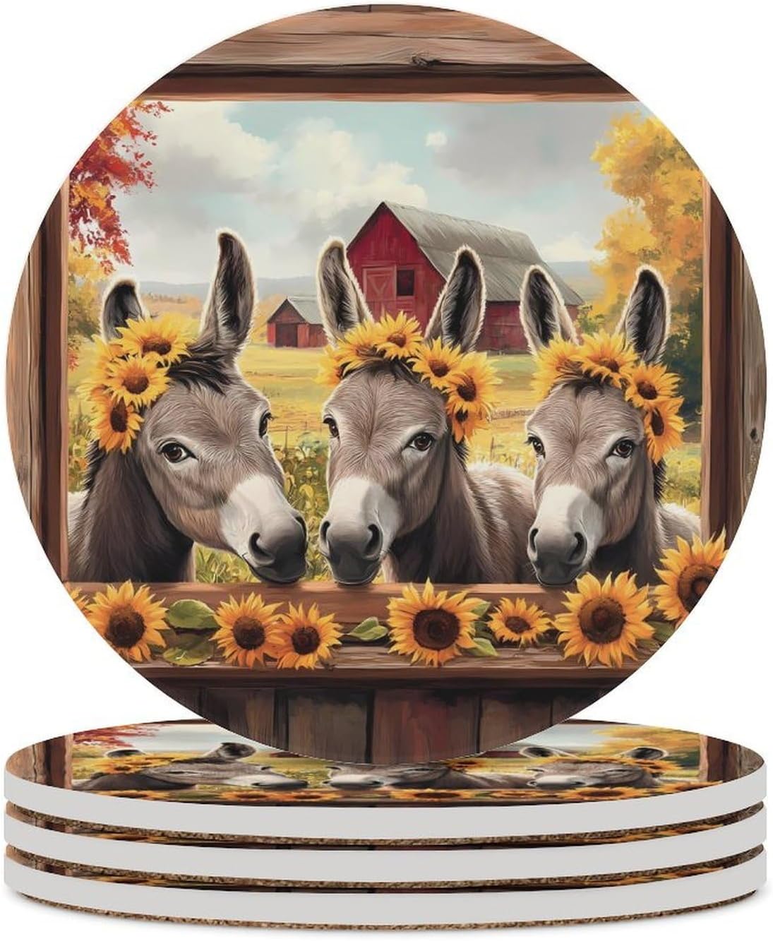 Cute Printed Round Drinks Absorbent Ceramic Coaster with Cork Base Suitable for Kinds of Mugs, Cups, Prevent Tabletop Wear And Scratches, and is Easy to Clean