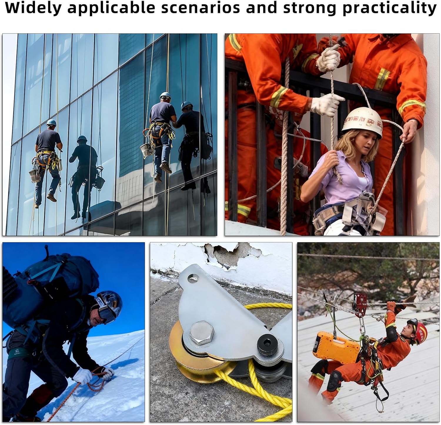 This is a three-wheeled portable pulley system. An upgrade from the standard two-wheeled design, it adds an extra wheel, significantly enhancing its utility and versatility. It features an adjustable angle to accommodate different working scenarios. The pulley helps save energy and allows for directional movement — for example, it can pull heavy objects upwards or horizontally.Constructed from high-quality metal components, this pulley system is robust and durable. Despite its strength, it remains highly portable and can be easily transported to the job site as needed. This versatility eliminates the need to purchase multiple devices for different applications, resulting in significant cost and effort savings.