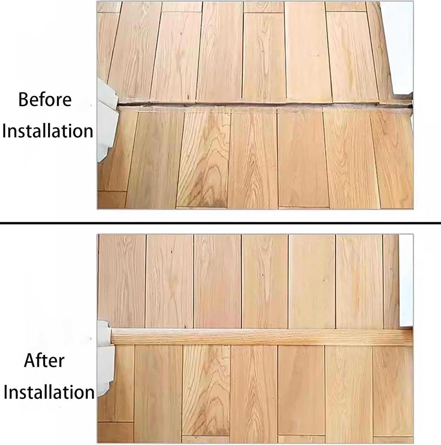Our threshold divider cover can be adapted to different decorating styles, connecting floor gaps and protecting you and your family!Packing List:- 1x Transition Strip- 1x HacksawSpecification:- Material: PVC- Length: 90 cm (35 3/8")- Width: 38 mm (1 1/2")- Height: 11 mm (3/8")- Thickness: 3 mm (1/8")Function: - Comes with a hacksaw for easy cutting.- Strong adhesion, not easy to fall off.- Thickened PVC, not easy to deform.- Threshold bar prevents tripping or falling.- Easy to cut, install, clean and maintain.Please Note:- Due to the difference of light and screen, the color of the item may be slightly different from the picture.- Due to manual measurement, the size may be slightly off. Thank you for your understanding.