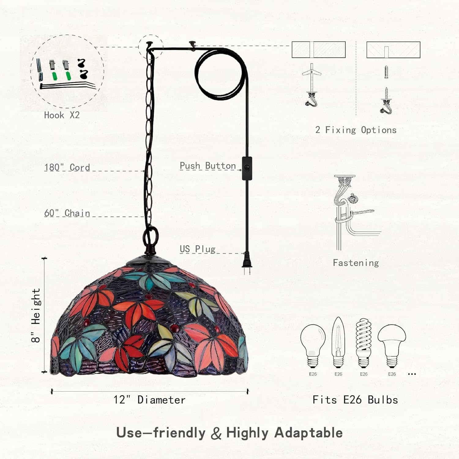 | Other Special Features of the Product | Handweld Tiffany Glass Shade |