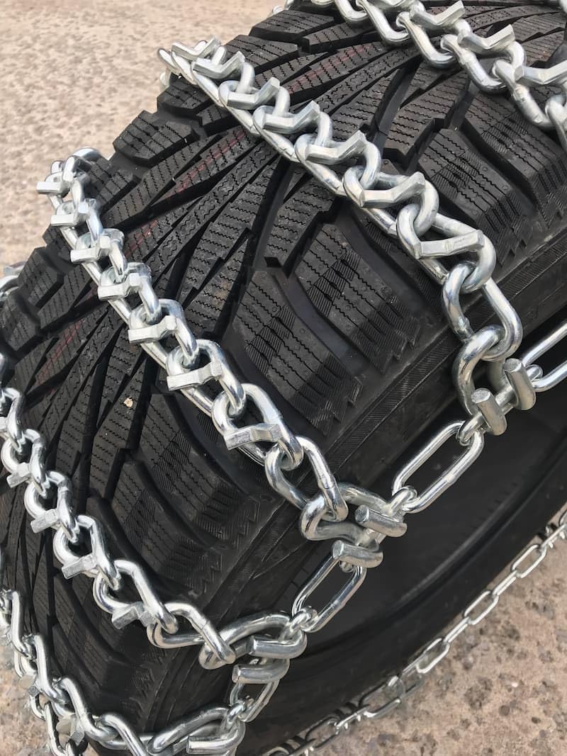 Heavy duty twisted link Truck Tire Chain. 7.14mm thick. Two Link for consistent traction and smoother ride. Since this is a 2 link chain, cams are not on the side chain since the 2 link takes the space of where the cam would be. Recommended for over the road, chain law, semi trucks.For plowing or extended use, the Heavy duty truck tire chains below are recommended when available in your size.