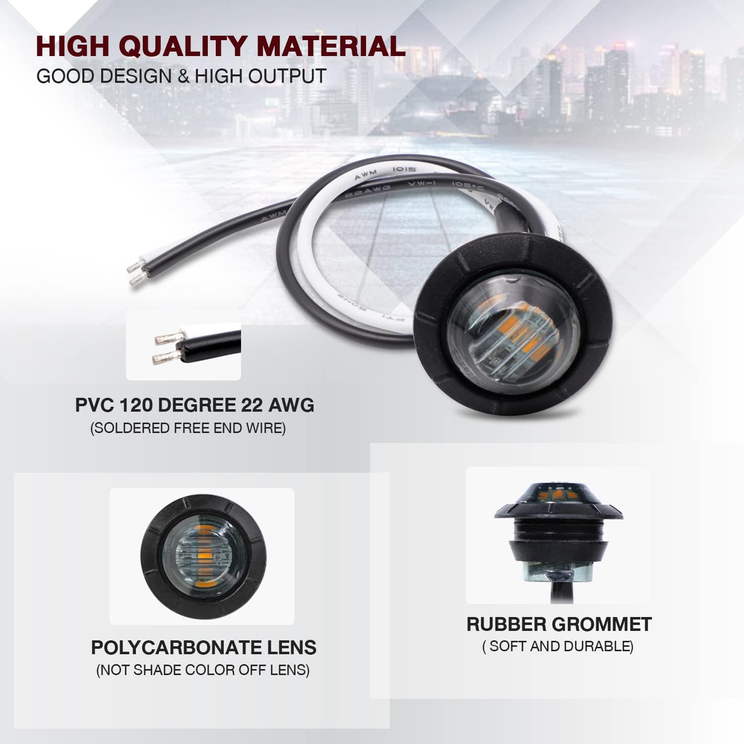 | Model | 3/4 Inch Mount 10 pcs Amber + 10 pcs Red LED |