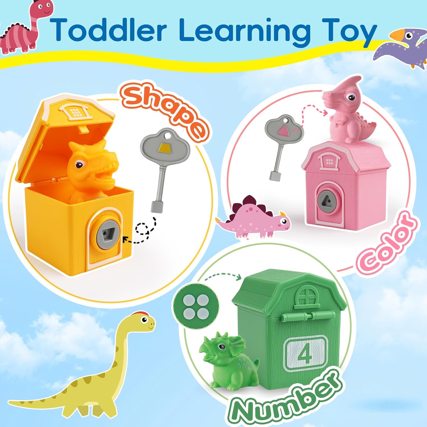 Toddler Montessori Learning Toys for 2+ 3 4 Year Old, Educational Counting Matching & Sorting Dinosaur Train with Keys to Unlock, Finger Puppets, Fine Motor Toys Birthday Gifts Age 2-4 3-5 Boys Girls