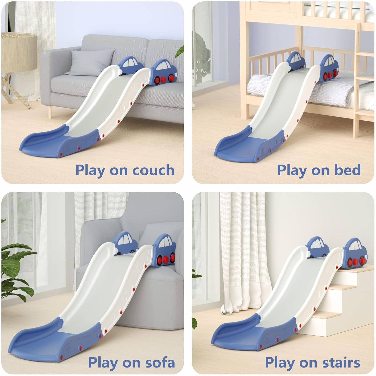 Wider. Smoother. Safer: 30% wider than standard, our toddler slide offers a smooth, comfortable glide for two children, with scratch-resistant edges for safe, interactive fun. Unparalleled Stability: Our couch slide boasts anti-slip silicone pads, ensuring your little one plays safely without any slips or tumbles. With the highest stability rating in the market, you can trust that this stair slide offers unparalleled safety and peace of mind for your child's playtime. Adorable Car-Themed Design: Designed in a cute cartoon car shape, this kids slide makes playtime thrilling as kids feel the excitement of racing. Effortless Storage and Assembly: Our stair slide’s compact size makes storage a breeze, and assembly is a snap, solving all your space-related concerns. Premium Quality: Crafted from top-tier HDPE material, this slide is as tough as it is fun. This slide for kids supports up to 280 lbs, catering to both children and adults. Certified CPC-safe, this delightful car-shaped design ensures endless joy for your little ones. After-Sales Support: Enjoy peace of mind with our dedicated customer service, offering prompt assistance and a comprehensive warranty to ensure your satisfaction and product longevity.