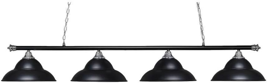 Collection: Oxford, Material: Steel, Finish Color: Chrome/Matte Black, Width: 16", Height: 11.25", Length: 76", Chain Length: 120", Lamping Type: Incandescent, Number Of Bulbs: 4, Wattage: 150 Watts, Dimmable: No, Moisture Rating: Dry Rated, Desc: Oxford 4 Light Bar Shown In Brushed Nickel Finish With 16" Italian Bubble Glass,