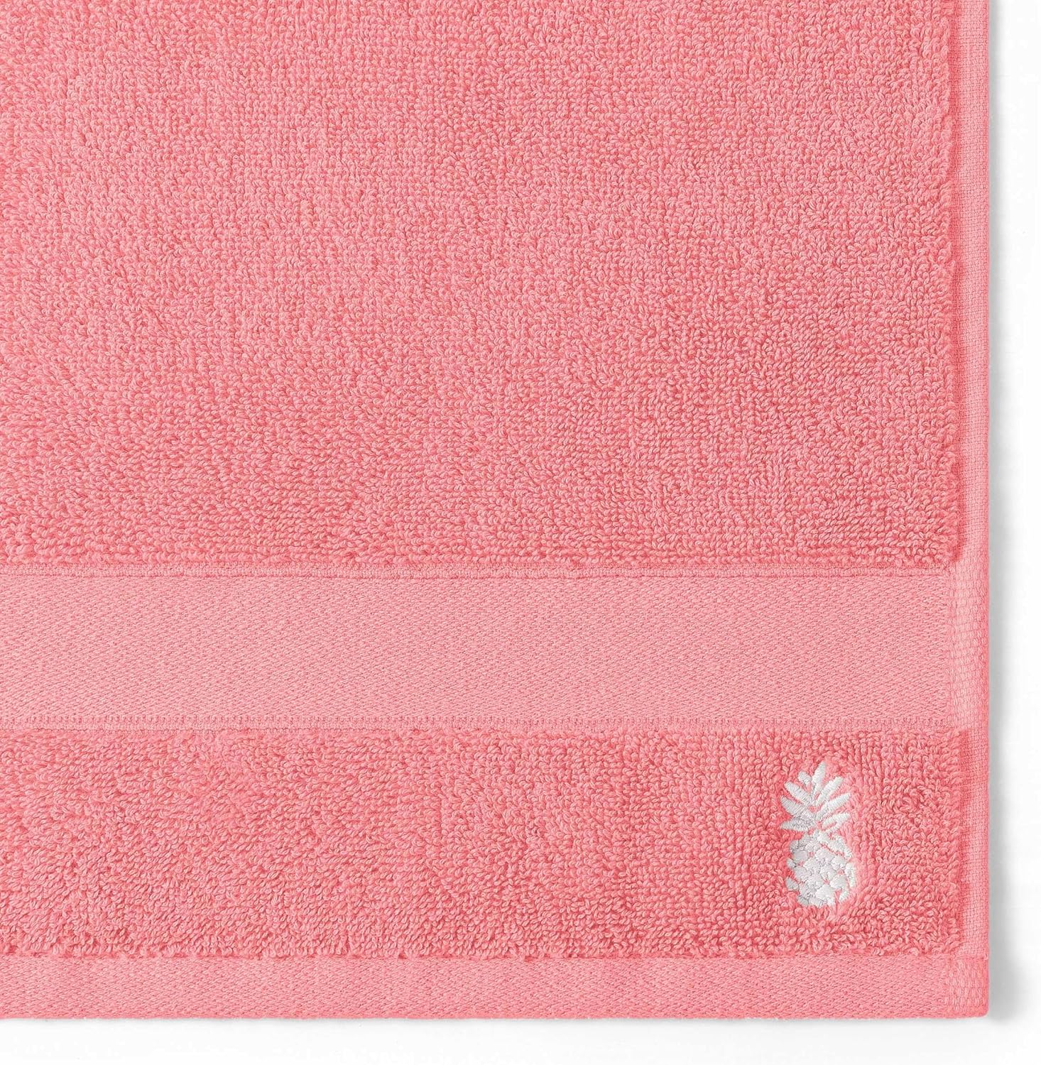 The Tommy Bahama pineapple bay towel set is self-reversing in bold, tropical colors with a charming embroidered pineapple detail—bringing Island life to your everyday. Piece-dyed and made of 100% cotton terry, each towel is decorative, soft, luxurious, and medium weight. This 6-piece set includes two bath towels, two hand towels, and two wash towels.