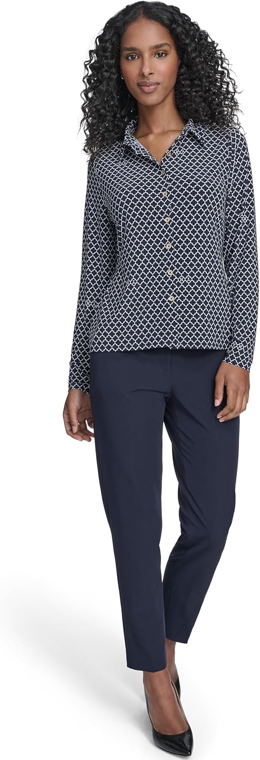 This Tommy Hilfiger Women's Long Sleeve Button Up Knit Top is a Long Sleeve Collared Button Up Knit Top