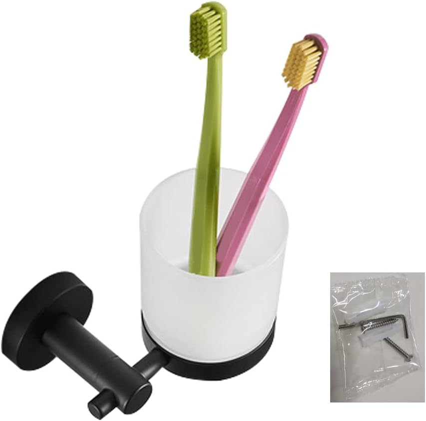 Toothbrush Tooth Cup Holder with Cup Wall-mounted Bathroom Accessories Bath Hardware Set Cup Tumbler Holder Silver/Black toothbrush tumbler holder for bathrooms wall mountedFeatures:brand new and SUS 304 stainless steel, strong and The thick frosted design toothbrush cup and internal rubber seal provide for extra grip for the toothbrush cup and prevent it from falling off.Hanging on the wall to free up counter space, it is very modern, elegant and beautiful.Toothbrush holders are suitable for homes and hotels.Easy to install and clean, very suitable for holding toothbrushes, toothpaste, Specifications: Material: 304 Stainless Steel + GlassWeight: 396g/552gSize: As picture showsType: Double Cup/Single CupColor: Silver/BlackPackage Includes:1x Toothbrush Holder SetNote:1.Please allow 1-2cm errors due to manual measurement, make sure that you do not mind before you order. 2.Due to the difference between different monitors, the picture may not reflect the actual color of the item.