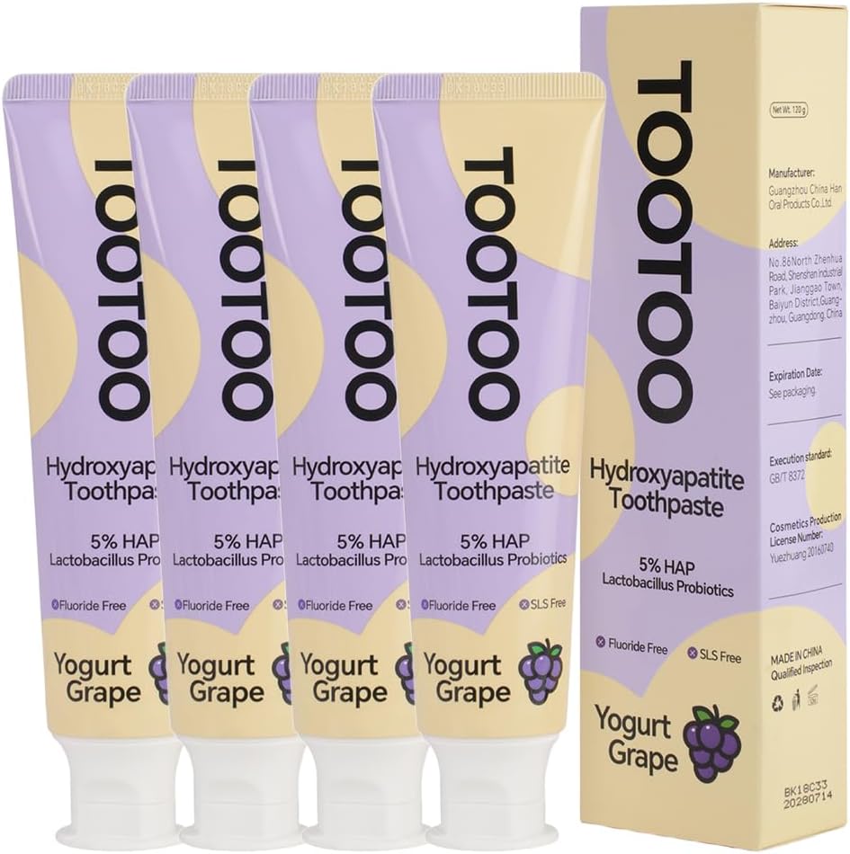 | Product Benefits | Encourages healthy brushing habits with a kid-friendly yogurt grape flavor, Gentle, low-foam formula suitable for sensitive teeth and gums, Helps strengthen and remineralize tooth enamel with hydroxyapatite, Ideal for toddlers and young children, Promotes a balanced oral microbiome with probiotics, Supports cavity prevention without fluoride |