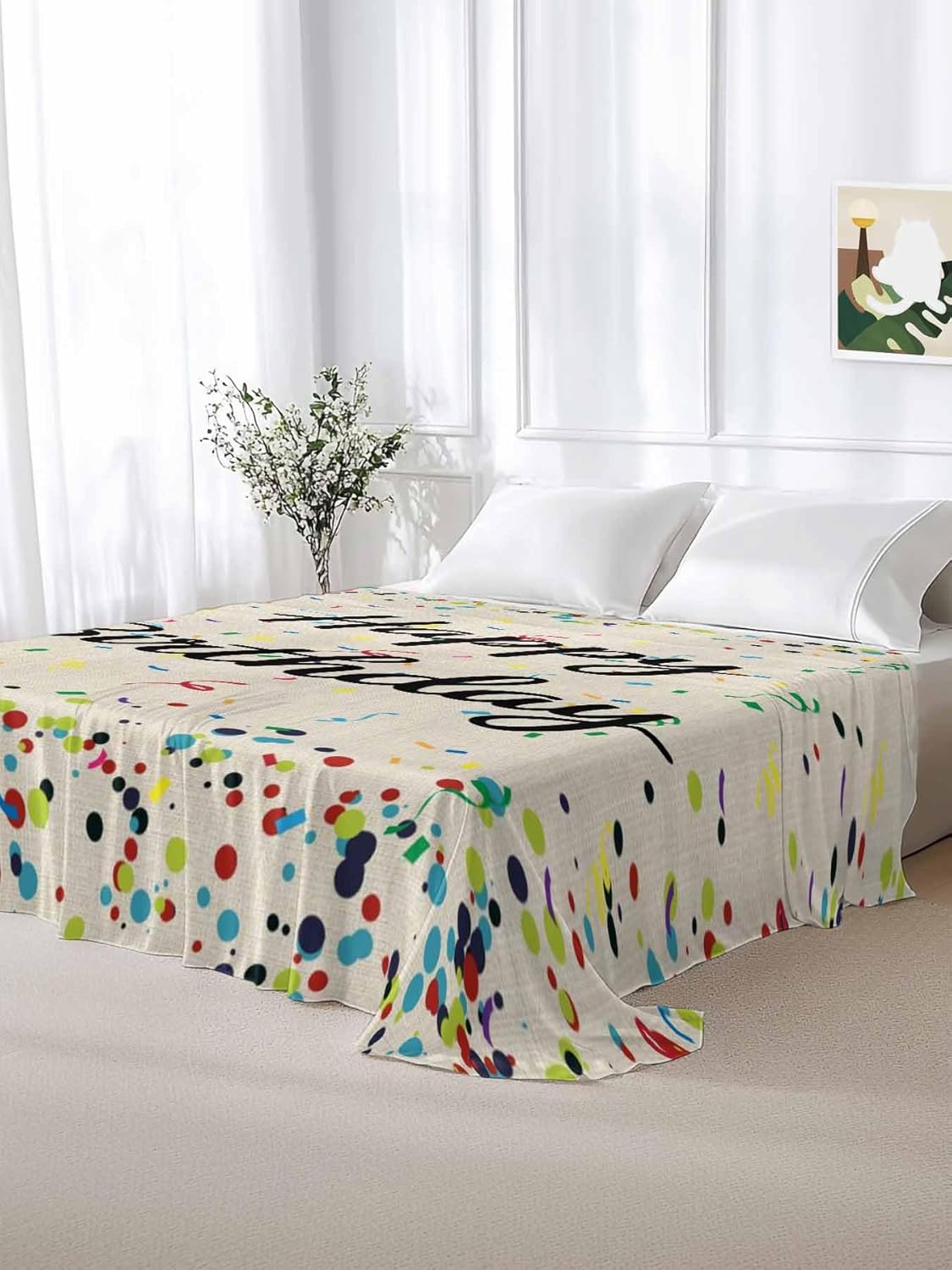 Comfortable Touch, and DurableBed sheets are made of comfortable microfiber material, which will keep you warm in winter without being too hot.The professional weaving and perfect hemming make the bed sheet and not easy to tear, deform and fade. Can be used all year round.Excellent Service, Well Decorated RoomWhether it is a child or an adult, you only need to tuck the excess part of the flat bed sheets under the mattress, so you don’t have to worry about flat sheets falling around when you turn over or move.You can also hang the excess part along the mattress to increase the of the room.Six Size Flat Sheet1 sheet: 96x66in (approx. 244x168 cm)1 sheet: 96x81in (approx. 244x190 cm)1 sheet: 102x90in (approx. 259x229 cm)Rich Styles, Unique ExperienceTop sheet feature a high-definition surface print that won't fade easily. Rich styles can meet most of your needs.Cute cartoon top sheets can add childhood fun to your children, and put them in a happy mood to fall asleep.Beautiful hotel sheets can also become a romantic touch for lovers, slowly enhancing the relationship between husband and wife.Exquisite Gifts, Exclusive for HolidaysThe best bed sheet are easy to use, soft and comfortable, and the bed sheet cover support customization, you can give special gifts to your family and friend, especially on Christmas, New Year, birthday, Valentine's Day, and Saint's Day Patrick's Day, Easter, Independence Day.