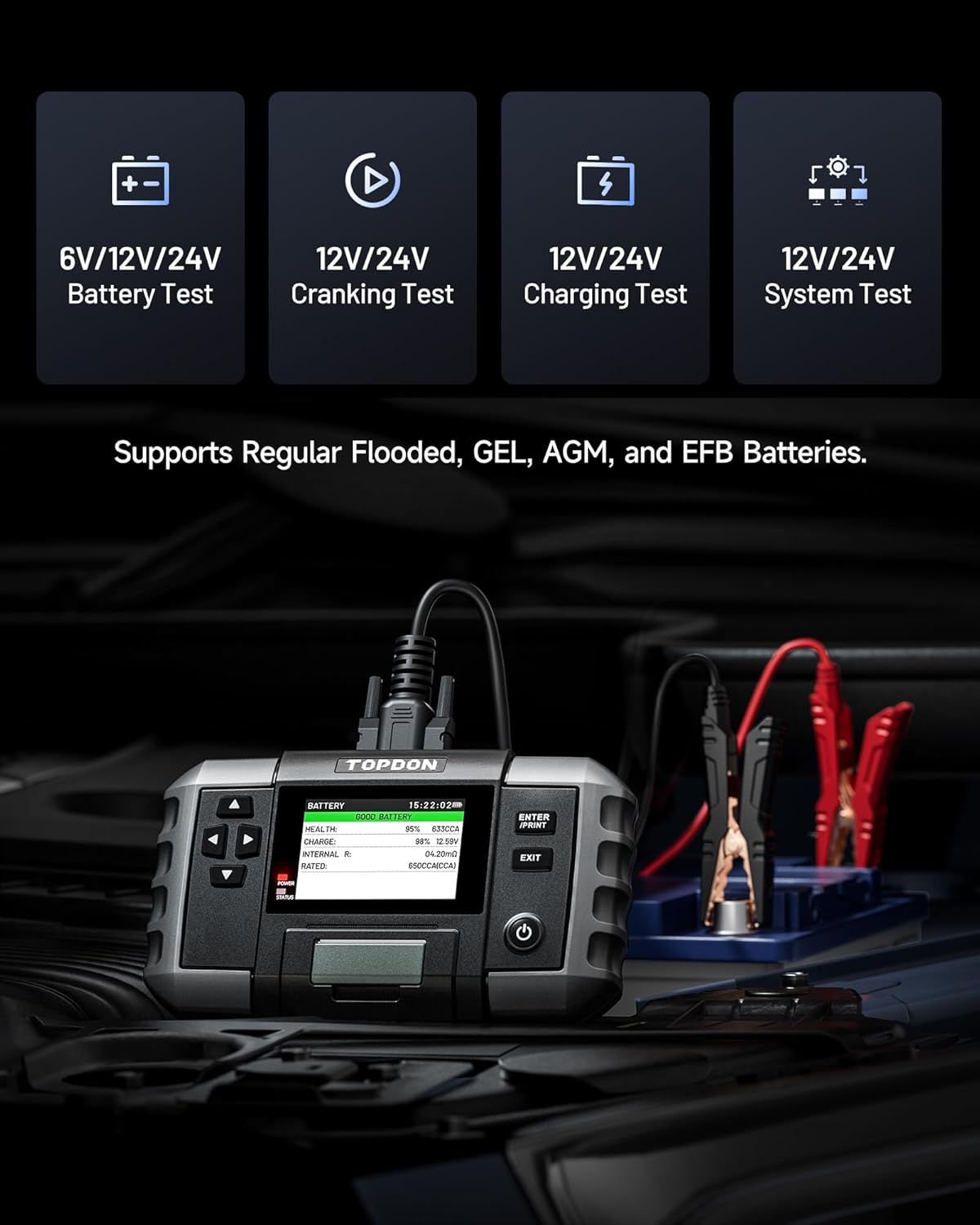 | Included Components | BT600 Plus,2× Test Cables with Clamps,5× Rolls of Thermal Printer Paper |
