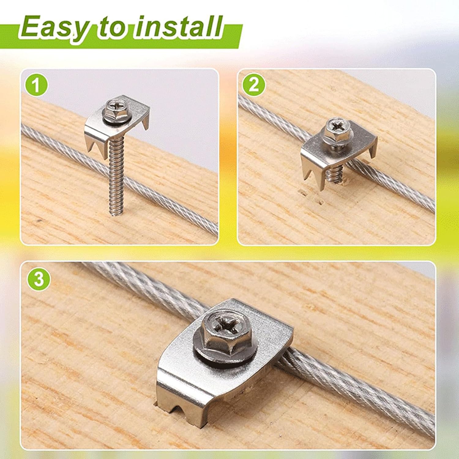 Spec: Item Type: Fence Post Fastener Product Material: Stainless Steel Fastener Size: Approx. 25 x 15mm / 1 x 0.6in Screw Length: Approx. 40mm / 1.6in Weight: Approx. 530g / 18.7oz Package List: 50 x Fasteners 50 x Screws 1 x Hex Adapter How To Use: Directly Use