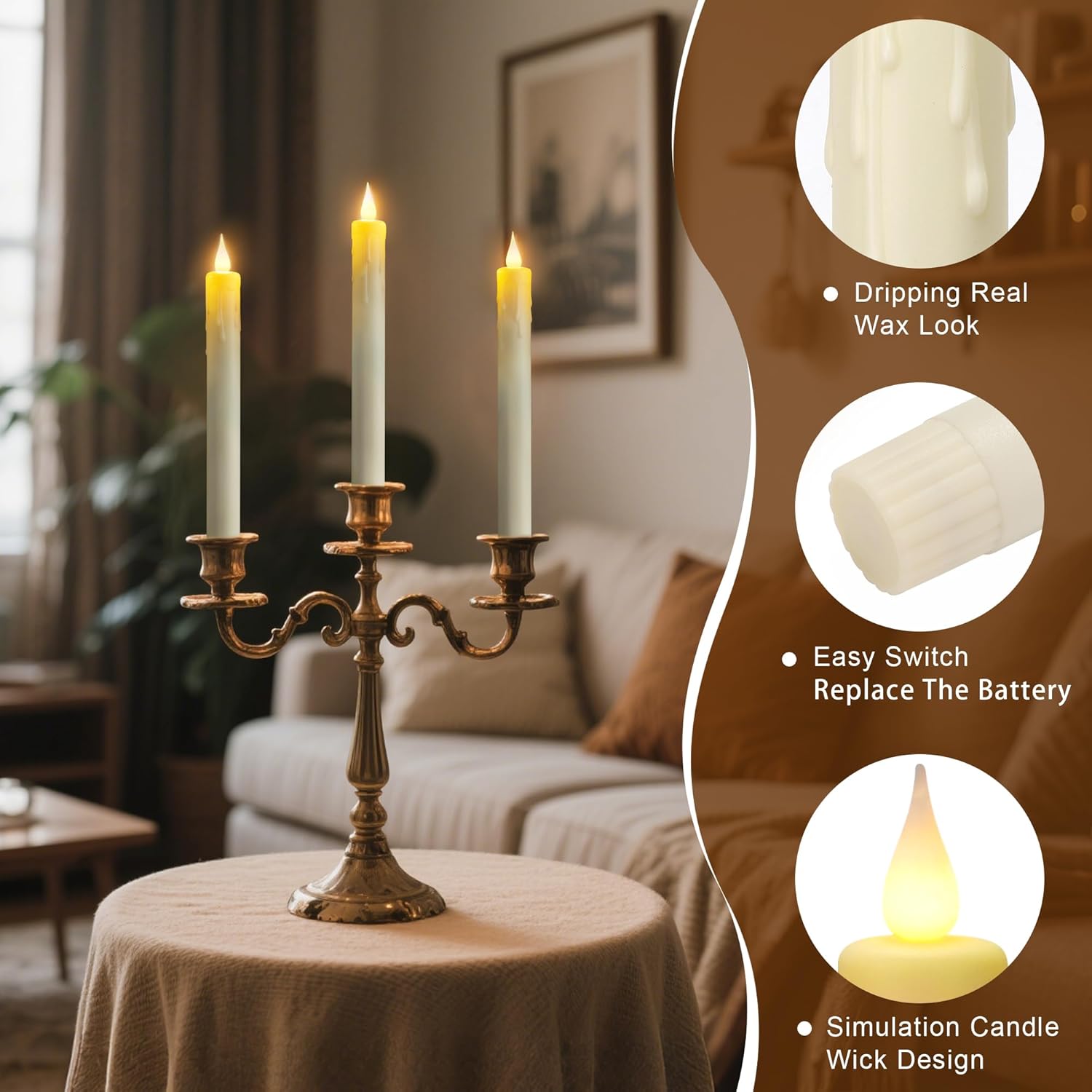 Create a Warm & Safe Ambiance with Remote-Controlled Taper Candles! Looking for realistic flameless candles that offer convenience and elegance? Our remote control taper candles provide the perfect flickering glow without the danger of an open flame. Whether you're decorating for a wedding, Christmas, Halloween, party, or cozy dinner, these battery-operated LED candles deliver a lifelike flame effect with adjustable brightness. 🔹 Smart Remote Control Features: ✔ On/Off & Timer Function – Set candles to auto-shut off after 2/4/6/8 hours. ✔ 5 Dimming Levels – Adjust brightness for the perfect mood lighting. ✔ Convenient Operation – Control multiple candles from up to 15 feet away. 🔹 Realistic & Safe Design: ✔ Dripless Wax-Like Texture – No messy wax, smoke, or fire hazards. ✔ Battery-Powered (2 AA, Not Included) – Long-lasting LED lights . ✔ Sturdy & Reusable – Lightweight yet stable for tabletop, fireplace, or centerpiece use. 🔹 Perfect for Any Occasion: ✔ Wedding & Event Decor – Elegant and hassle-free for ceremonies & receptions. ✔ Holiday Lighting – Safe for Christmas, Halloween, or Thanksgiving displays. ✔ Home & Restaurant Use – Adds a cozy glow to bedrooms, bathrooms, or dining areas. 🎁 What’s Included: 12x Remote-Controlled Taper Candles (9.5" Ivory,Batteries Not Included) 2x Remote Control Upgrade your decor with these flameless LED taper candles—stylish, safe, and remote-controlled for ultimate convenience!