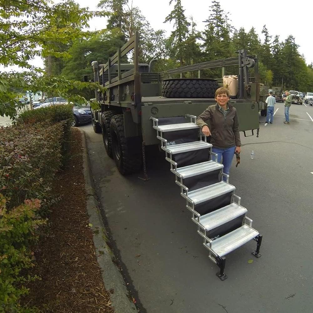 Torklift The Glow Steps are the most versatile and secure scissors step available. Heavy Duty construction consists of 100 percent aluminum and stainless steel. The Glow Step features self-illuminating entry/exit for your RV that lasts up to 10 hours with just five minutes of light exposure. High quality stainless bolted hinges allow for easy step addition or removal. Lifetime Warranty Sure Grip Extrusion (uses no grip tape), 100 percent aluminum and stainless steel self-illuminating steps.