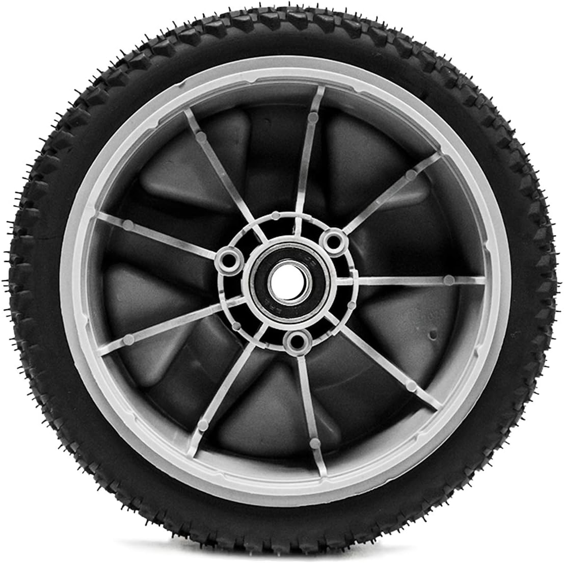 The Toro brand has long been synonymous with quality, and Toro's quality standards begin with high quality components, like this wheel assembly. With a wheel hub made of durable polypropylene, this 8 in. wheel assembly is a long-lasting and highly functional front wheel replacement for TimeMaster 30 in. models. This wheel assembly offers a semi-pneumatic tire with a stylish 5-spoke hub, and an aggressive tread to minimize slip. 8 in. front replacement wheel for 30 in. timemaster model years 2013 and newer Stylish 5 spoke design Hub is made of durable polypropylene Semi-pneumatic tire Fits models 20199 and 20200