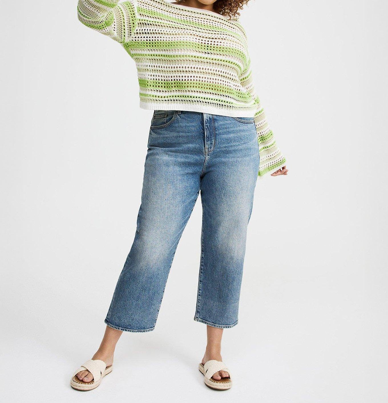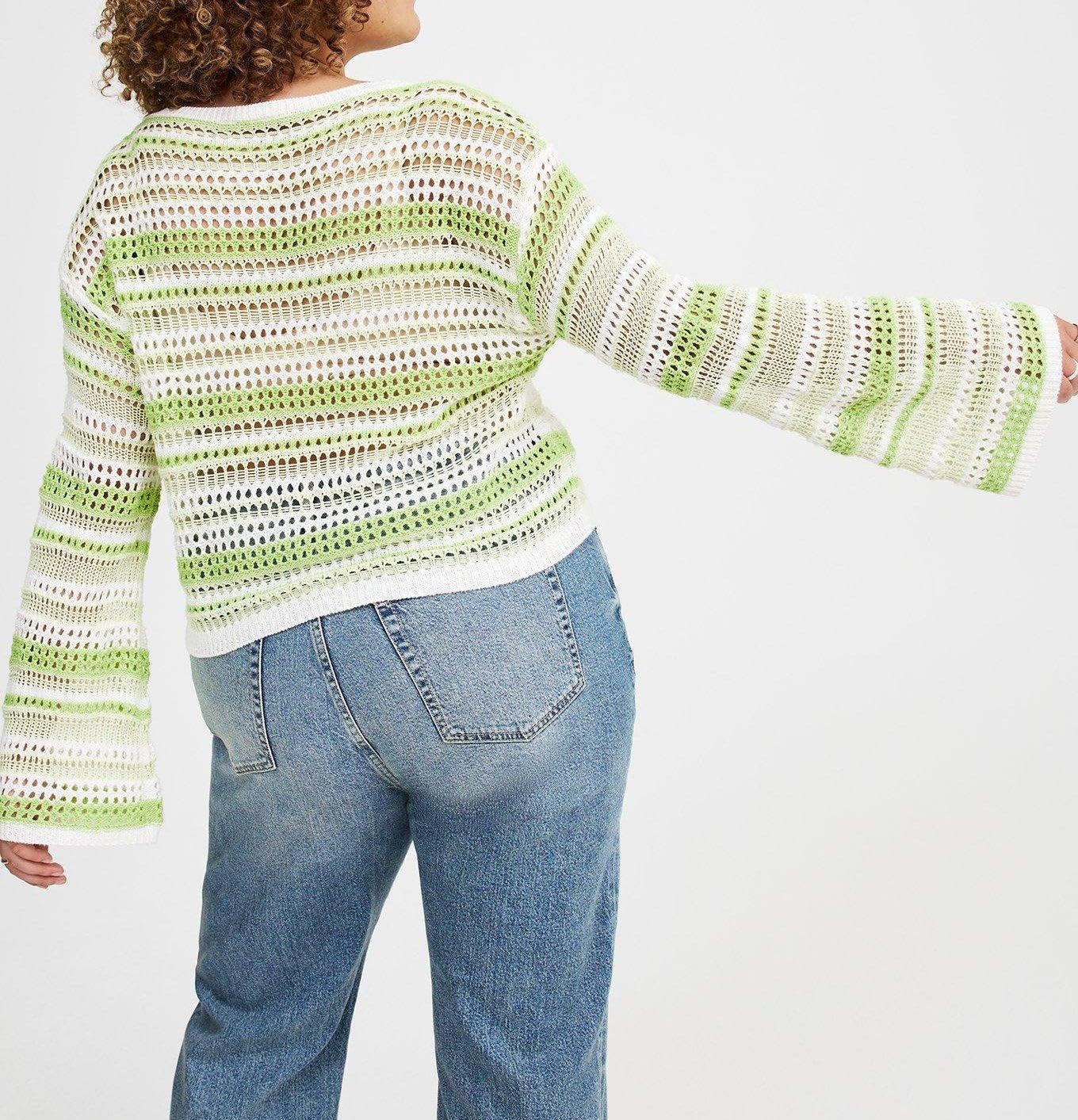 FITModel is 5'10" wearing size 1.Pullover silhouette.Cropped length.Measures 24" from shoulder (size 2).MATERIALS + CAREYarn knit fabric.75% cotton, 25% polyester.Machine wash cold. Line dry.Imported.DETAILSBoat neck.Drop shoulder.Long wide sleeves.Open stitch yarn.Please note this item is made of open stitch yarn and could catch or pull.