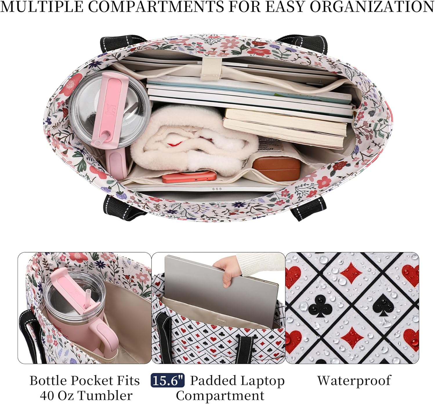 The Ultimate All-Purpose Tote Bag Meet the Happie Peppie Large Nylon Tote — a thoughtfully designed everyday essential that blends structure, spacious organization, and effortless style. Whether you’re heading to work, the gym, or catching a flight, this versatile tote keeps everything in place while elevating your look. Smart Organization · 24L Spacious Capacity With a roomy 24L interior (16” L × 6.5” W × 13” H), this tote bag for women offers generous space without feeling bulky. A padded compartment securely fits up to a 15.6” laptop, making it ideal for commuting or business travel. Inside, you’ll find a large zipper pocket for valuables, two slip pockets for smaller essentials, a built-in water bottle holder to keep drinks upright, and a spacious main compartment for books, chargers, gym clothes, or daily necessities. Three oversized exterior pockets provide quick access to your phone, notebook, or tumbler, while the back luggage sleeve and rear zipper pocket add security and travel convenience. Designed for Every Part of Your Life Professional enough for the office, spacious enough for the gym, and practical enough for travel, this structured nylon tote transitions seamlessly between work, school, hospital shifts, weekend getaways, and everyday errands. The durable waterproof nylon exterior ensures long-lasting performance and effortless cleaning. Functional, fashionable, and built for real life — this is the tote that keeps up with you.