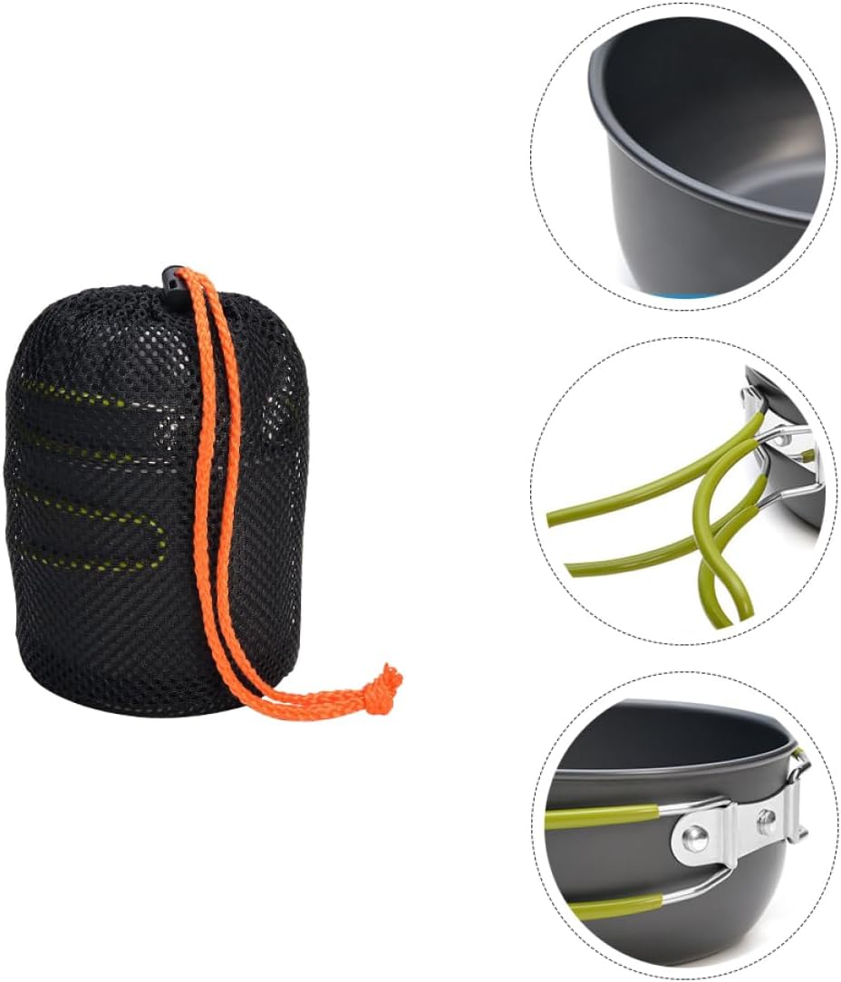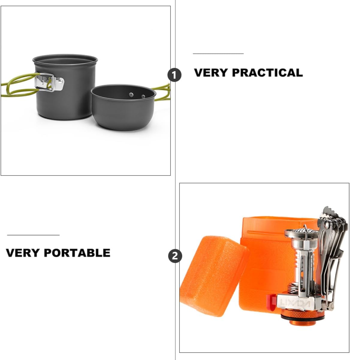 Package Include 1 x furnace 1 x tank bracket 1 x cutter 1 x fork 1 x spoon 1 x fiber cloth 2 x cup 1 x cauldron 1 x small pot 2 x storage bag Features -Material: Aluminium alloy, stainless steel camping utensils -Color: Assorted Color camping cookware -Size: About 16.00X12.00X12.00cm/6.29X4.72X4.72incgh - Made of materials for and use camping pots. - Lightweight and aluminum alloy and stainless steel, for camping backpacking aluminum alloy cookware. - Portable and lightweight, easy to carry camping tool. - Enjoy a outdoor activity with this camping cooking set camping cookware kit. - Reliable performance will help you cook food on the table every time portable cutlery.Goods Descriptioncamping cookware This item is a set of outdoor cookware, which is made of aluminum alloy and stainless steel materials for and long time use.camping cookware kit Lightweight and , it is for camping backpacking, hiking, picnic and other outdoor activities