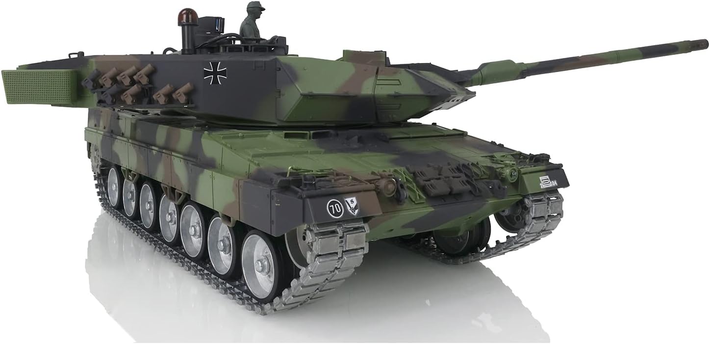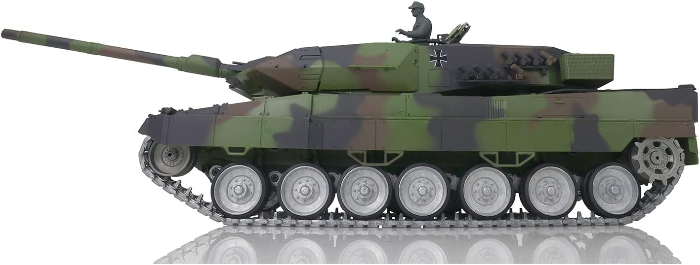 ※The package includes(This tank is very heavy): Tank Radio controller FPV camera system BB pellets 360 degree turret rotation upgrade parts Infrared Combating Transmitter(supporting multi-player tank war) Infrared Combating Receiver Idle smoking generator Smoke liquid (Maybe it can not be shipped to your country because of the shipping rules, pls forgive it.) 1800mah Tank Battery(we can provide better 5000mah-7000mah battery, please consult.) USB Universal Charger Kits English manual book(Don't rely on manual book, BECAUSE sometimes the book is wrong and outdated) ※Metal Parts coming with the tank Metal tracks Metal driving wheels Metal idler wheels Full metal road wheels Metal suspension Metal return rollers(if the real tank has) Steel gears driving gearboxes Barrel