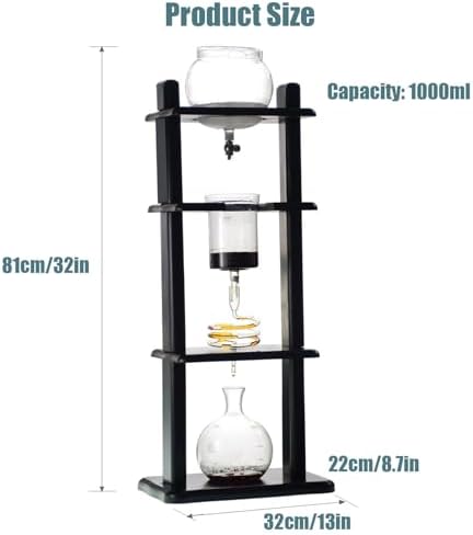 Tower Drip Ice Dripper Handmade Coffee,Cold Brew Coffee Maker whole body high borosilicate high transparent glass, heat-resistant and cold-resistant, strong and durabl-e Iced Tea Maker ice drop regulating valve, rotating left and right, can accurately adjust the speed How to use: 1. Add medium ground coffee powder to the filter, the ratio of ice water to powder 2. Put the lower pot back, you need to align the water inlet with the faucet 3. Add ice cubes and ice water to the upper pot 4. Adjust the valve, and the dripping speed can be uniform 5. Put them together and fill the water tank with cold water. 6. Put cold brew coffee in a sealed bottle. Specifications: Product name: Ice drip coffee pot Capacity: 1000ml Size: 32*22*81cm Use scenarios: family, kitchen, living room, coffee shop, restaurant, party Package list: 1X Cold Brew Coffee Tower Warm reminder: This is an ice drip bottle, warm and hot water is prohibited Customer service: If you have any questions, please contact us, we are happy to answer and serve you; Welcome to our store, wish you a happy shopping!