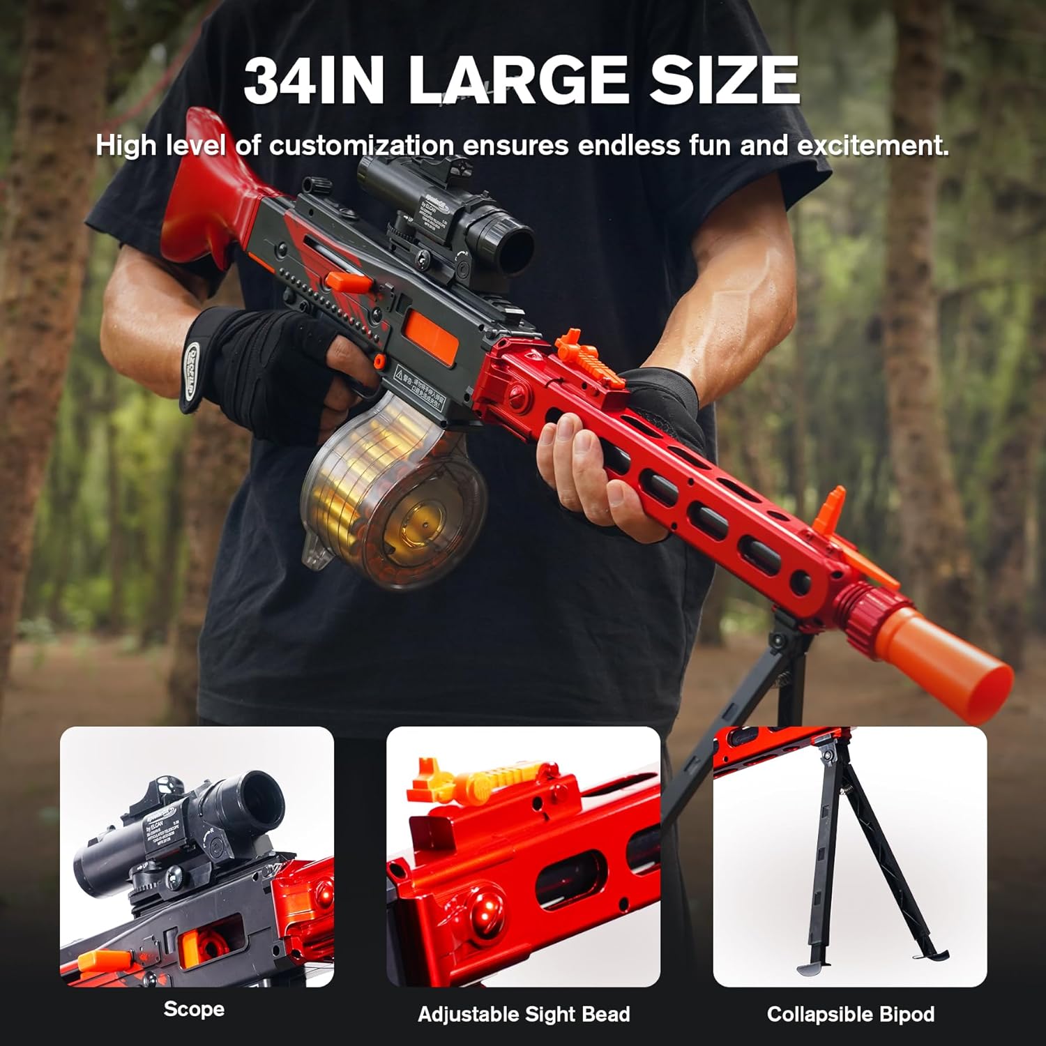 • Safe Foam Dart Fun: Equipped with soft foam darts made from friendly EVA materials, this automatic blaster guarantees safety during play. Perfect for both indoor and outdoor shooting games, worry less and enjoy more!