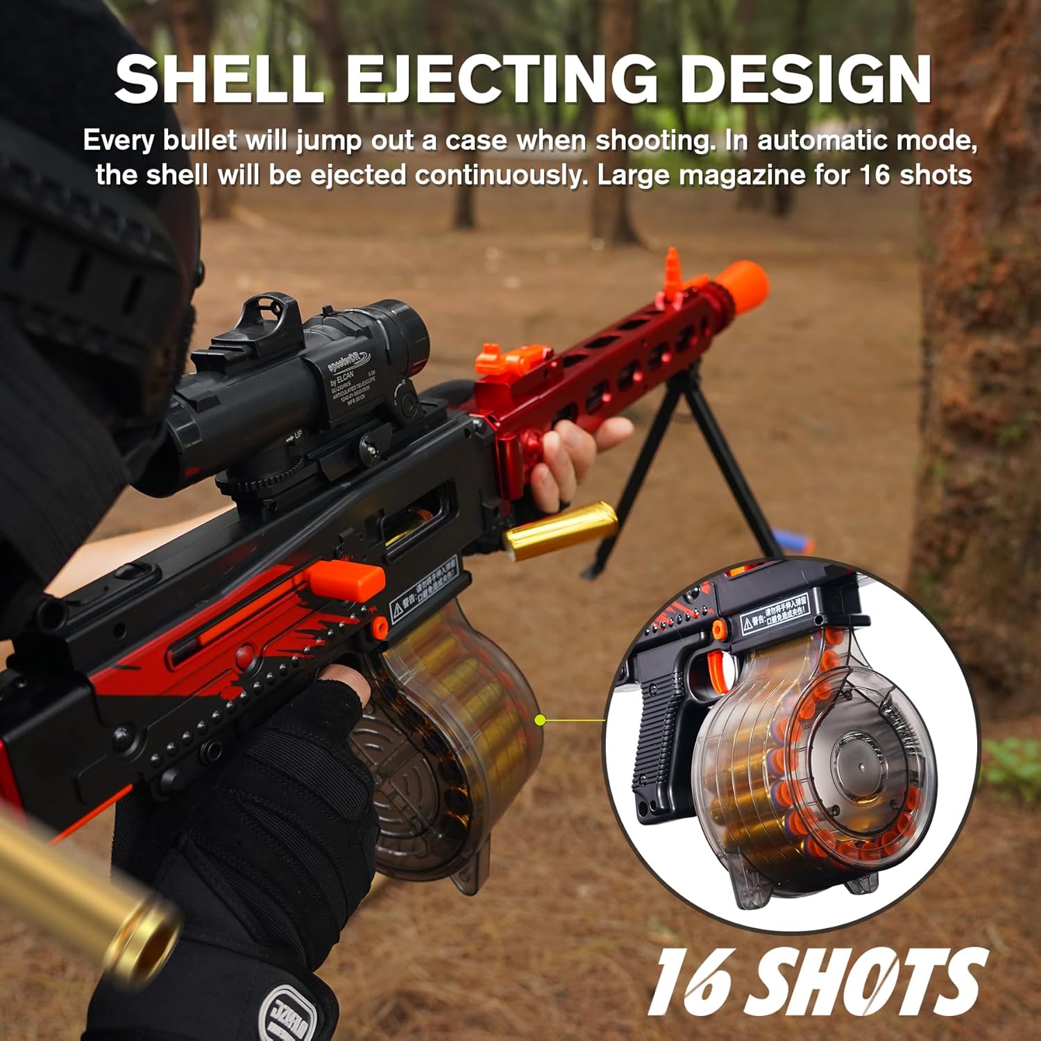 Toy Blaster Automatic Shell Ejecting Sniper Rifle with Soft Bullets, Auto & Manual Modes for Teens, 18+ (RedSun)