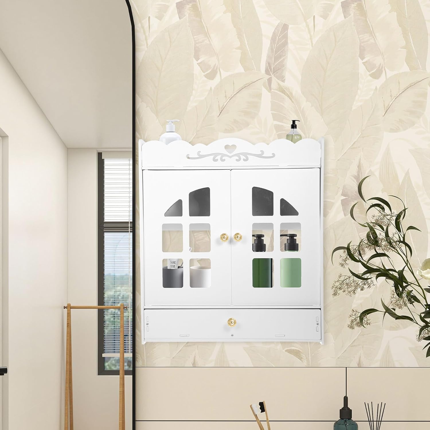 Package List 1 x bathroom wall cabinet Characteristics -Size:44.00X39.00X17.50cm/17.29X15.33X6.88in wall organizer -Product Info:Cosmetic storage rack -Material:Plastic washroom shelf -Color:White shelf organizer -The multifunctional design of this wall-mounted cosmetic storage rack for bathrooms provides versatile storage options for various bathroom supplies Bathroom Supply. -The design of this wall-mounted storage shelf ensures that items are protected from dirt and kept storage rack. -Made from materials, it is built to last and withstand daily use. bathroom wall organizer -The sleek and stylish appearance of this bathroom accessory complements any bathroom decor, adding a touch of elegance to the space bathroom shelf. -Made from materials, this wall-mounted storage shelf is designed to withstand long-term use without deformation or damage bathroom racks.Goods Descriptionshelf organizer This wall-mounted storage rack is the perfect solution for organizing your bathroom essentials.bathroom shelf With its multi-functional design, it can be used to store a variety of items, from makeup to toiletries