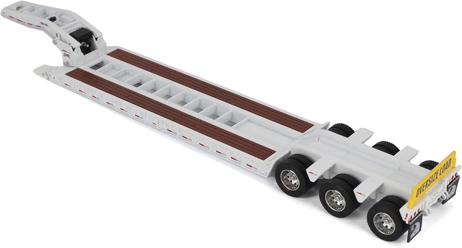 The Trail King TK120 Hydraulic Detachable Gooseneck Lowboy Trailer White (Regular Version) "Transport Series" 1/50 Diecast Model by Diecast Masters features a finely detailed construction with realistic hydraulic and gooseneck components. Its crisp white finish and authentic design make it a perfect addition for collectors and heavy equipment transport diorama displays.