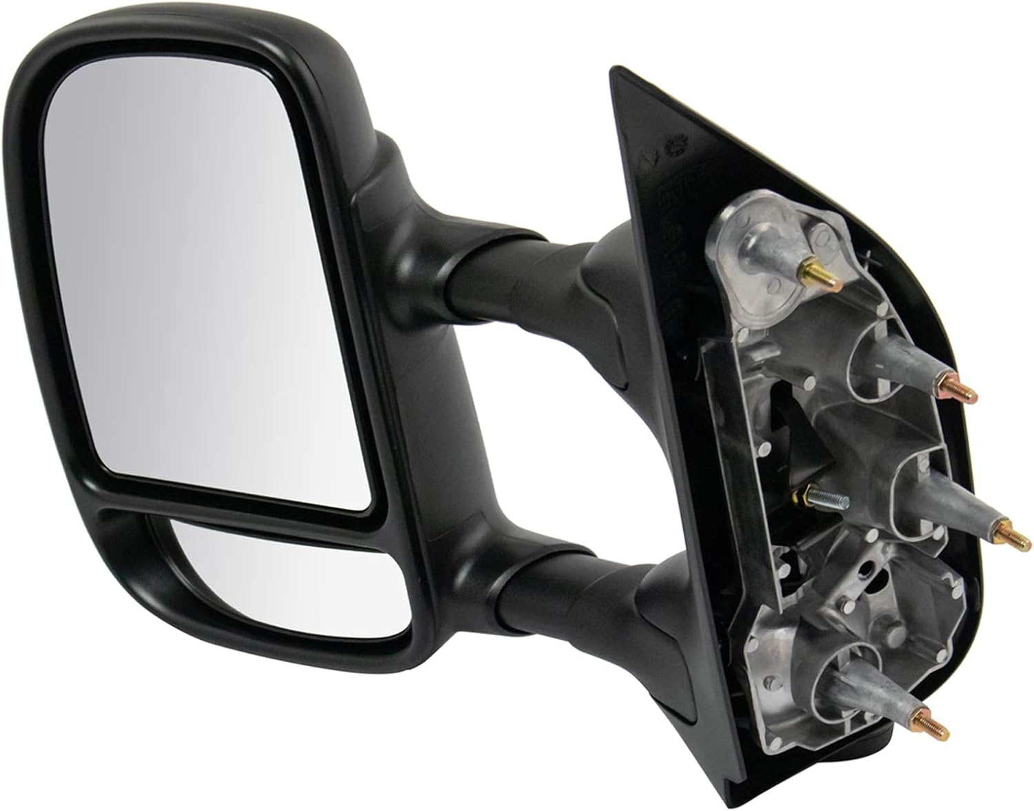 180 Degree Swing Textured Black Towing MirrorFitmentFord E150 2003-14 - Driver Side ManualFord E150 Club Wagon 2003-05 - Driver Side ManualFord E250 2003-14 - Driver Side ManualFord E350 Club Wagon 2003-05 - Driver Side ManualFord E350 Super Duty 2003-14 - Driver Side Manual 2015-19 - Cutaway Van Driver Side Manual 2021 - Cutaway Van Driver Side ManualFord E450 Super Duty 2003-14 - Driver Side Manual 2015-19 - Cutaway Driver Side Manual 2021 - Cutaway Driver Side ManualFord E550 Super Duty 2003 - Driver Side ManualProduct AttributesMounting Hole Quantity: 4Cover Color: BlackHousing Color: BlackGlass Color: ClearGlass Surface: FlatAdjustment Type: ManualFold Away Mechanism: ManualExtendable Mechanism: ManualHousing Turn Signal Indicator: NoMemory Setting: NoBlind Spot Indicator: NoIntegrated Puddle Light: NoSide View Camera Included: NoAutomatic Dimming Included: NoUtility Spotlight: NoAspherical Glass: NoReverse Gear Tilt-Down: NoMirror Turn Signal Indicator: NoManual Remote Control: NoConvex Shaped Glass: NoTemperature Sensor Included: NoLane Departure Warning System: NoHeated: NoMaterial: PlasticCover Finish: TexturedHousing Finish: TexturedBlind Spot Mirror Included: YesMounting Hardware Included: YesMirror Folding Type: 180 Degree SwingTowing Mirrors Features & Benefits: Features and BenefitsMirror Color / Finish: Textured BlackMirror Type: TowingReference Numbers128-00816L32102123C2Z17683DAA7C2Z 17683 DA7C2Z17683DAFO1320238