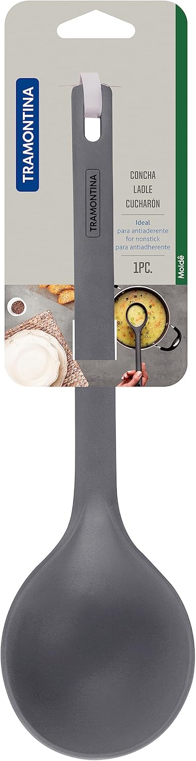 Tramontina Moldé silicone shell is the perfect choice to serve with much more convenience and style, that bean or soup for your meals. Choose Tramontina and ensure the best for your kitchen! Features: - Brand: Tramontina - Model: 25813160 *Image merely illustrative Main Features: - Flexible, sturdy and ideal for use in your cookware with non-stick or ceramic coating as it does not damage them, it will add the best to your kitchen. - It is resistant to temperatures up to 180℃ and dishwasher safe, making it easier for your kitchen tasks. Specifications: - Silicone shell withstands up to a temperature of 180℃ - Pass-through hole in the handle allowing it to be hung in your kitchen. - Ideal tool for use in pans with non-stick and ceramic coatings as it does not damage the product. - Dishwasher safe for easy daily life. Recommendations for Use: - Before first use, wash the garment well and dry it. - Do not use abrasive sponge for cleaning and for longer product durability it is recommended to dry well before storage, even after machine washing. - The product may be altered in visual aspect throughout use, due to food pigmentation and natural degradation of utensil color. - Do not leave the utensil on hot surfaces for a long time. - Do not store the utensil with cutting and punching materials. - For product disposal and packaging follow current recycling guidelines and product and packaging follow current recycling guidelines. Package Includes: - 1x Tramontina Gray Silicone Mold Shell - 25813160