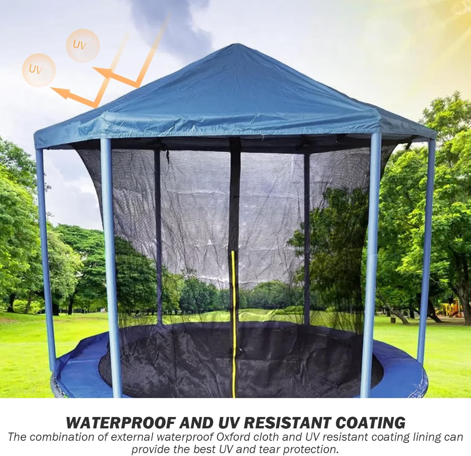 Trampoline Canopy 12ft PE Trampoline Shade Waterproof Trampoline Shade Cover UV Protection Replacement Trampoline Accessories, Trampoline Accessories Description: Our trampoline canopy offers excellent waterproof and sun protection, safeguarding you from the elements while enjoying your time on the trampoline. With a size of approximately 12ft (365.76cm), it is important to confirm the compatibility with your trampoline for a proper fit. Made from PE material, it is resistant to wear and tear, ensuring long-lasting use. The simple design allows for easy installation and convenient storage when not in use. It serves as an ideal replacement shade cover for damaged canopies, allowing you to continue enjoying the fun of your trampoline without interruption. Invest in our trampoline canopy to enhance your trampoline experience and protect both yourself and your trampoline from the sun and rain. Features:. Trampoline Canopy. -Color: Blue. -Material: PE. -Size: about 12ft/365.76cm. Note: Manual measurement, please allow slight errors on size. The colors may exist slight difference due to different screens. Package Including 1 Piece Trampoline Canopy.
