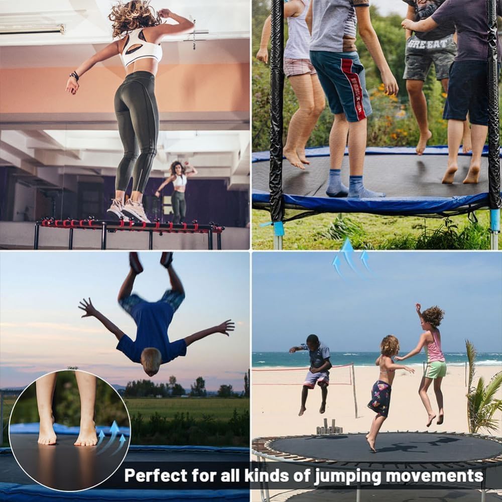 DescriptionWith this new and strong trampoline jumping mat, the bounce of the trampoline can be restored to its original state! Safety measures and protective jumping mats have ultraviolet (UV) and waterproof properties, and ultimately provide you with the safest, lasting joy and interesting investment. Therefore, it is an ideal choice to fix and install trampoline mattresses and accessories in open areas outdoors.Name: Trampoline Replacement MatA: 8 feet -diameter 2.44 meters(48 buckles)B: 10 feet - diameter 3.06 meters (54 buckles)C: 10 feet - diameter 3.06 meters (56 buckles)D: 10 feet - diameter 3.06 meters (60 buckles)E: 10 feet - diameter 3.06 meters (64 buckles)E: 10 feet - diameter 3.06 meters (64 buckles)8ft-48 V-rings:Mat Size: 79.1 inchSpring Size: 5.5 inchLoad Bearing: 250kg10ft-54 V-rings:Mat Size: 103.2inchSpring Size: 5.5 inchLoad Bearing: 275kg10ft-60 V-rings:Mat Size: 103.2.1inchSpring Size: 5.5 inchLoad Bearing: 300kg10ft-64 V-rings:Mat Size: 103.2 inchSpring Size: 5.5 inchLoad Bearing: 300kg12ft-36 V-rings:Mat Size: 125.2 inchSpring Size: 6.5 inchLoad Bearing: 350kgPacking list:1 x Trampoline Replacement Mat (with an installation tool)