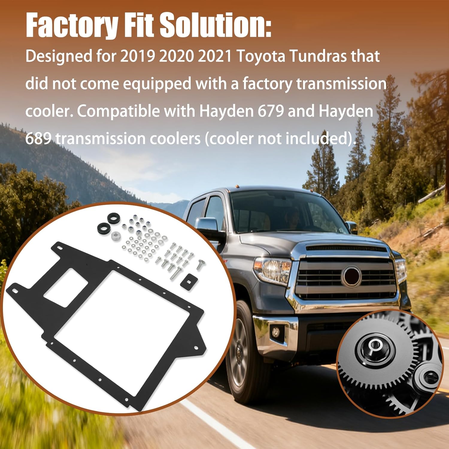 | Included Components | Transmission Cooler Mounting Bracket Includes stainless steel hardware + horn relocation kit + (2) hose-protection rubber grommets. |