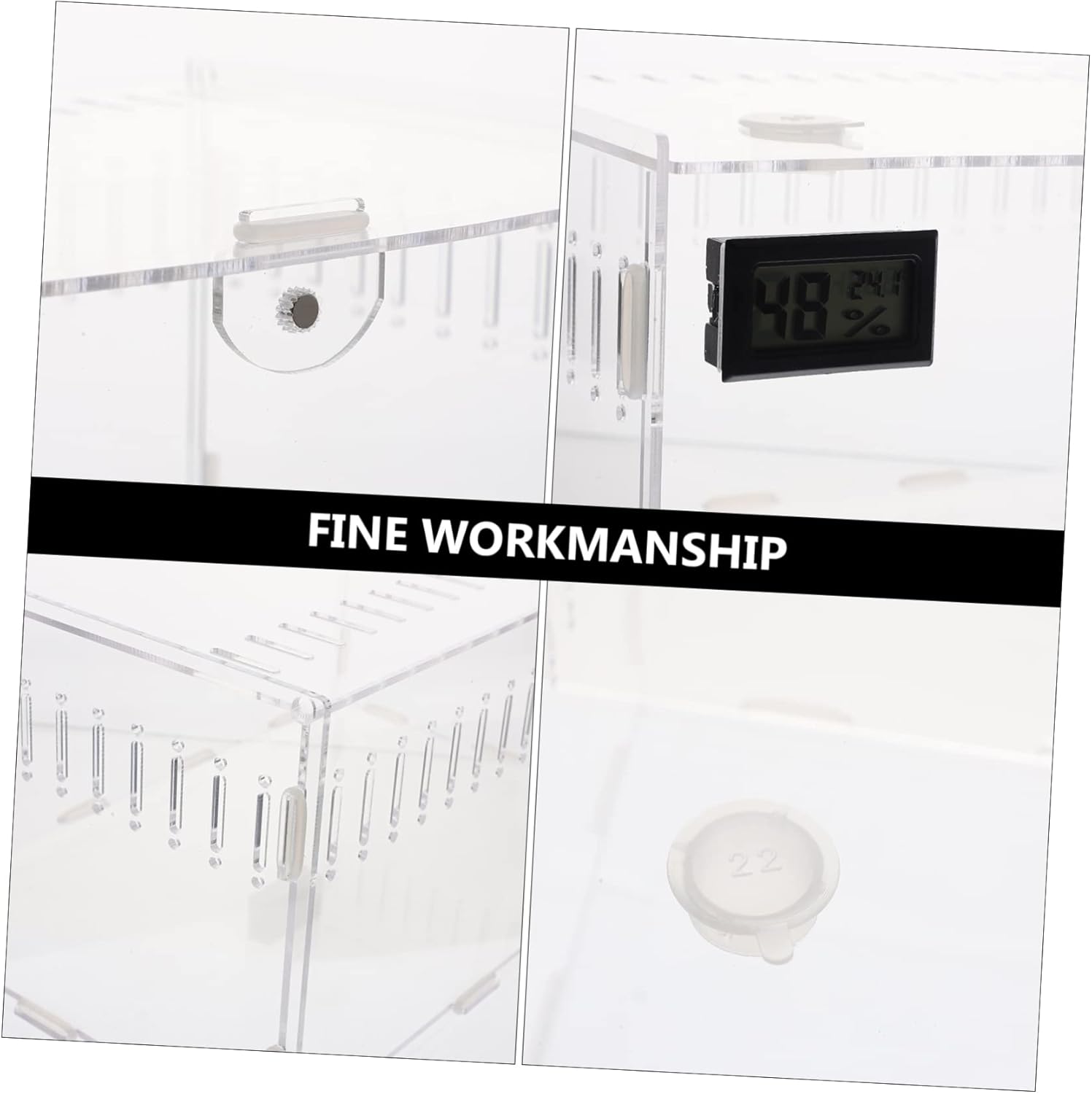Package List 1 x Reptile Breeding Box Characteristics -Material:Acrylic reptile cage -Note: It comes with humidity temperature meter transparent reptile enclosure. -Size:30.00X20.00X15.00cm/11.79X7.86X5.89in reptile plastic container -Product Info:Reptile feeding box -Color:Transparent household reptile cage - Can be given as a gift to your friends who have reptile , they will need it lizard cage. - Transparent acrylic material, , light-transmitting, sturdy and durable, safe to use portable reptile cage. - The reptile feeding box is the perfect and comfortable living nest for reptile reptile enclosure. - Can pets from , there are ventilation holes, not stuffy reptile supply. - Suitable for snakes, tarantulas, , geckos, crickets, , crabs, frogs, lizards, tortoise and other reptile transparent reptile breeding case.Goods Descriptionreptile enclosure Suitable for raising , house lizards and other small .transparent terrarium The transparent design looks very simple but stylish.clear reptile cage It is safe and convenient, and there are vents to keep your pets comfortable.portable reptile terrarium This reptile breeding tank is a lovely home item