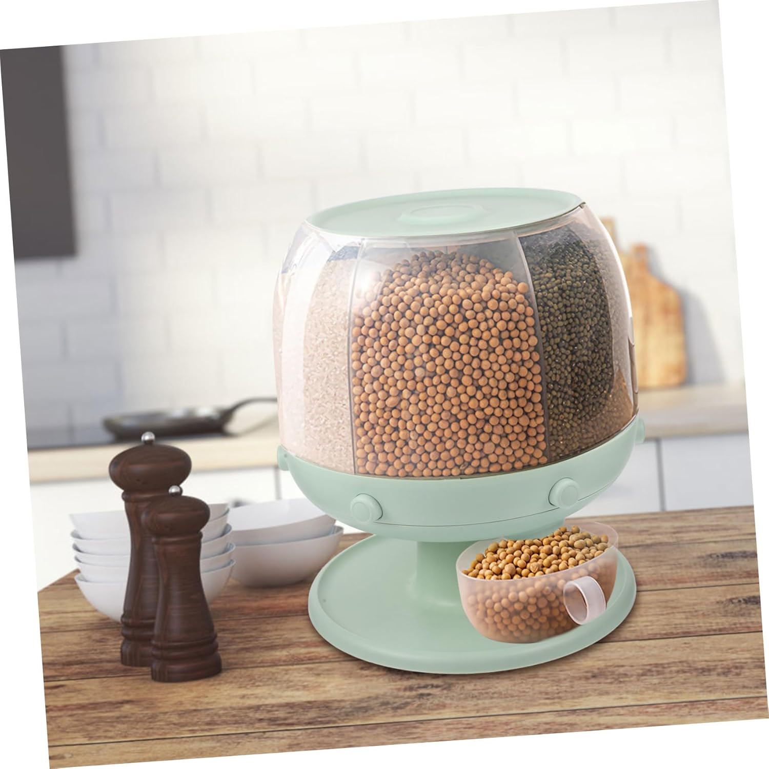 Package Include 1 x rice dispenser Characteristics -Size:30.50X25.50X25.50cm/11.99X10.02X10 cereal dispenser for . -Color:Green storage containers -Material:Plastic grain dispenser kitchen - Owning the strong wear and break ability, very practical, with excellent texture grain preservation cintainer. - Suitable for storing red beans, soy bean, pearl barley, coffee bean, corn, rice, and etc airtight food. - Transparent body, visible volume, you will know the condition of the items inside whenever beans dispenser for kitchen. - Simple and delicate, excellent and convenient, carefully crafted, not easy to deform due to the high hardness dry food dispenser. - Rotatable design, you can easily get the food you want by rotating the food dispenser, convenient to use storage.Goods Informationcereal container No need to lose sleep over rice.flour dispenser Excellent and wonderful helper for your home.dispenser container It closes securely and protects your healthy grains from , and .grain storage dispenser This product can save your space and storing bulk amounts of grains.rice holder This large home storage bucket is an incredible container for rice, beans, wheat, other grains