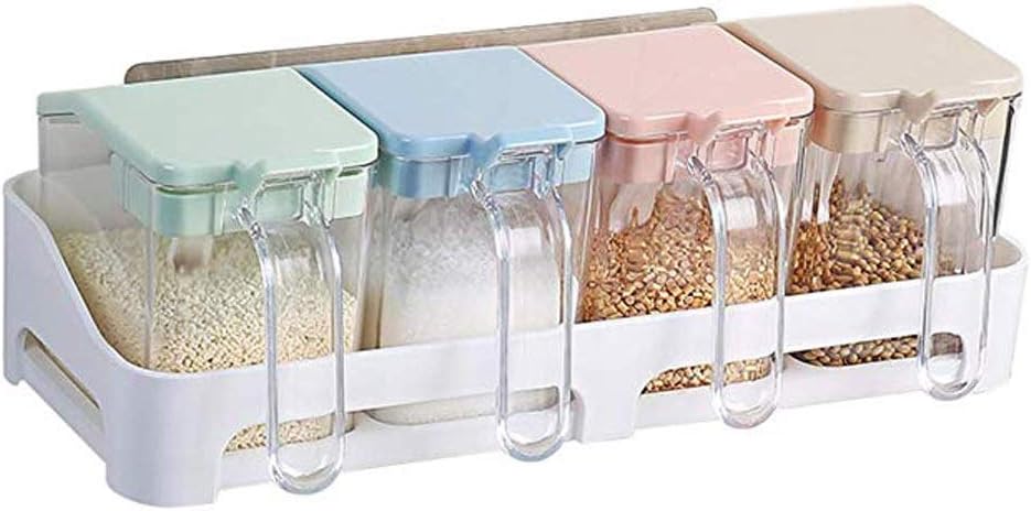 : CruetMaterial: PPApplicable space: kitchenSize: 25*13.5*10.7cm, 32.5*13.5*10.7cmColor: simple colorUses: can add salt, MSG, sugar and other spicesEach seasoning jar is equipped with a separate spoon, clean and not easy to smell.Use circular drill holes, which can be placed on the table or fixed with nails.The bottom is transparent, the inner seasoning is clear