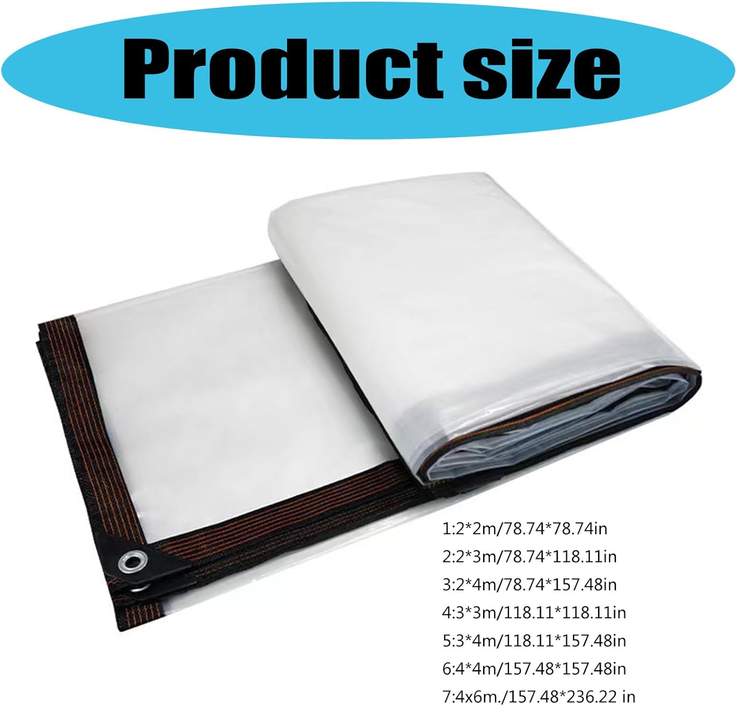 Transparents Waterproofed Tarpaulin Pet House Covers Tarps Greenhouses Awnings For Camping And Gardening EnthusiastsFeatures:High densities PVC component, waterproofed and durability, providing all-weathers protecting.Four corner reinforcement, easy to fix; Suitable for various outdoor environment.Light weight and easy to fold, for carrying and storage.Suitable for family users, camping enthusiasts, gardening enthusiasts, and professional who need outdoor shelter.Used for Balconies rain shelter, camping site construction, garden plant protecting, outdoor activity sun shading, and various occasion.Specifications:Color:Seven ElectionsDimension:2×2m/78.74×78.74in 2×3m/ 78.74×118.11in 2×4m/78.74×157.48in 3×3m/118.11×118.11in 4×4m/157.48×157.48in 4×6m/157.48×23.6.22inComponent:PVCPackage Includes:1pc Waterproofed Camping TarpsNote:1.Please allow 1-2cm errors due to manual measurement, making sure that you will not mind before order. 2.Due to the differences between different monitors, the picture may not reflect the actual color.