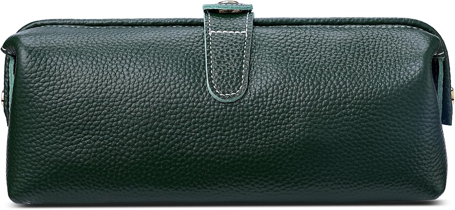Genuine leather: This travel makeup bag is made of top-grain cowhide and is meticulously handcrafted to ensure durability and a long service life. The leather is smooth and shiny. The leather is firm and thick, which naturally enables this toiletry bag to maintain its shape well.