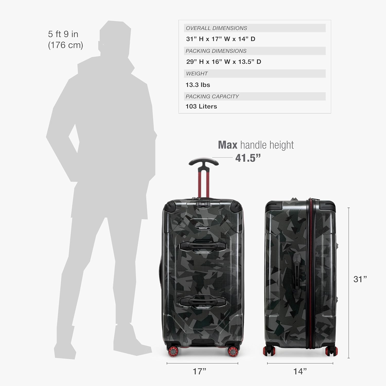 The Maxporter II trunk luggage delivers the perfect blend of durability, security, and style, designed to meet the demands of modern travel. Crafted for long-lasting performance, its sleek trunk-style design is both functional and fashion-forward. Built-in anti-theft zippers, a TSA-approved combination lock, and an ergonomic handle provide enhanced protection and peace of mind. The patented spinner wheel system offers smooth, stable mobility across any surface, while recessed wheels maximize interior packing space. Inside, the fully lined compartment features adjustable dividers and protective corner guards to keep your items safe and organized. Additional conveniences like a bottom grip handle and add-a-bag strap make handling effortless. Whether you're heading on a weekend trip or an extended journey, the Maxporter II is made to travel smarter and more securely.
