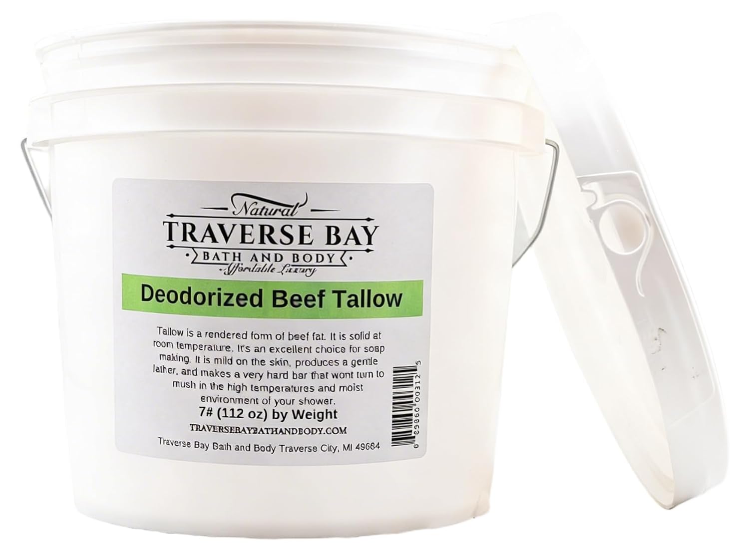 BEEF TALLOW DEODORIZED. Soap making supplies. 7 pound Gallon. 112 oz Weight 1 Gallon BEEF TALLOW. We share our commitment with our producers/manufacturers to source only the highest quality ingredients, using fair-trade farming practices. This is high quality BEEF TALLOW. BEEF FAT RENDERED Great for soap making. Creamy lather. Water and oil resistant labeling, so you will always know what’s in your bottle. All of our oils are sold by weight not volume. All are weighed on digital scales. Oils vary widely in density. So oil levels in bottles vary depending on oil. Most soap and personal care product recipes are measured by weight not volume. IMPORTANT: All Traverse Bay Bath And Body products are for external use only unless otherwise indicated.