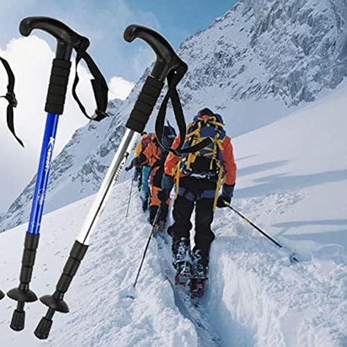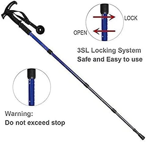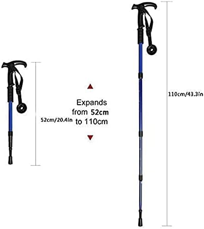 Features: 1 spring suspension, triple spiral lock. Lightweight and easy to carry.2 The middle pole has a scale for measurement.3 The non-slip handle feels comfortable and comes with a snow cover. The tip of the rod has a small diameter and can be easily inserted into the mud and sand to adapt to any terrain.4 Easy to use and comfortable, suitable for outdoor activities such as hiking, hiking, skiing.5 The middle pole has a scale for measurement.6 Spring suspension design to reduce the impact of wrists, arms and shoulders.7 Adjustable nylon wristband that can be loosened or tightened and can be easily adjusted to the degree of required Firmness.8 Essential tools for outdoor activities such as hiking, hiking, and tourism. Product Name: 4 section T handle shrinking trekking poleProduct specifications: 55-110 cm. Product weight: 350 gramsRod body material: 6061 aluminium alloyWristband material: polyester + EVA foamTip: tungsten steelHandle: rubberSurface treatment: lacquer wear and corrosion resistance