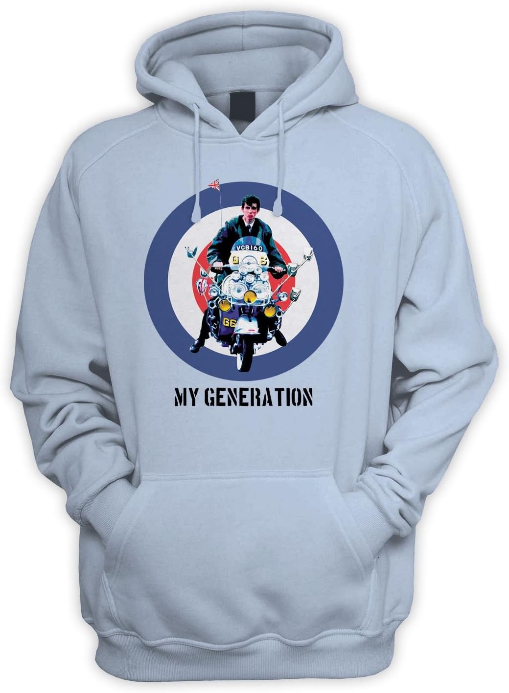 The hoodie is a cotton polyester mix and has a drawstring hood and pouch pocket. It is available in sizes small to XXL. The image is a high quality screen print.